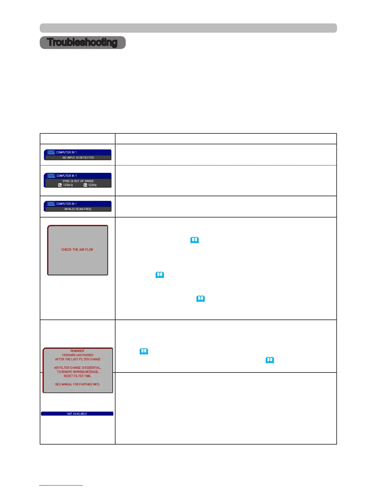 Please conrm the signal input connection, and the status of the signal source.