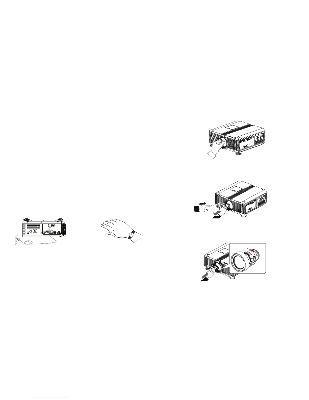 5 逆时针转动镜头,小心地将其从投影机前部卸下。按下释放按钮。