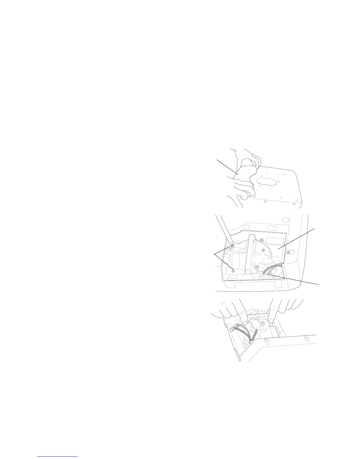 5 Loosen the two captive screws that attach the lamp housing to the pro-