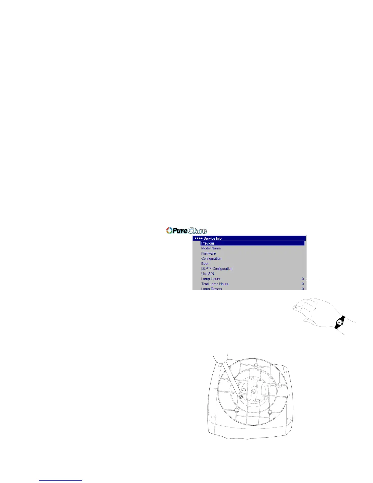 The lamp hours timer in the Service Info menu counts the number of hours