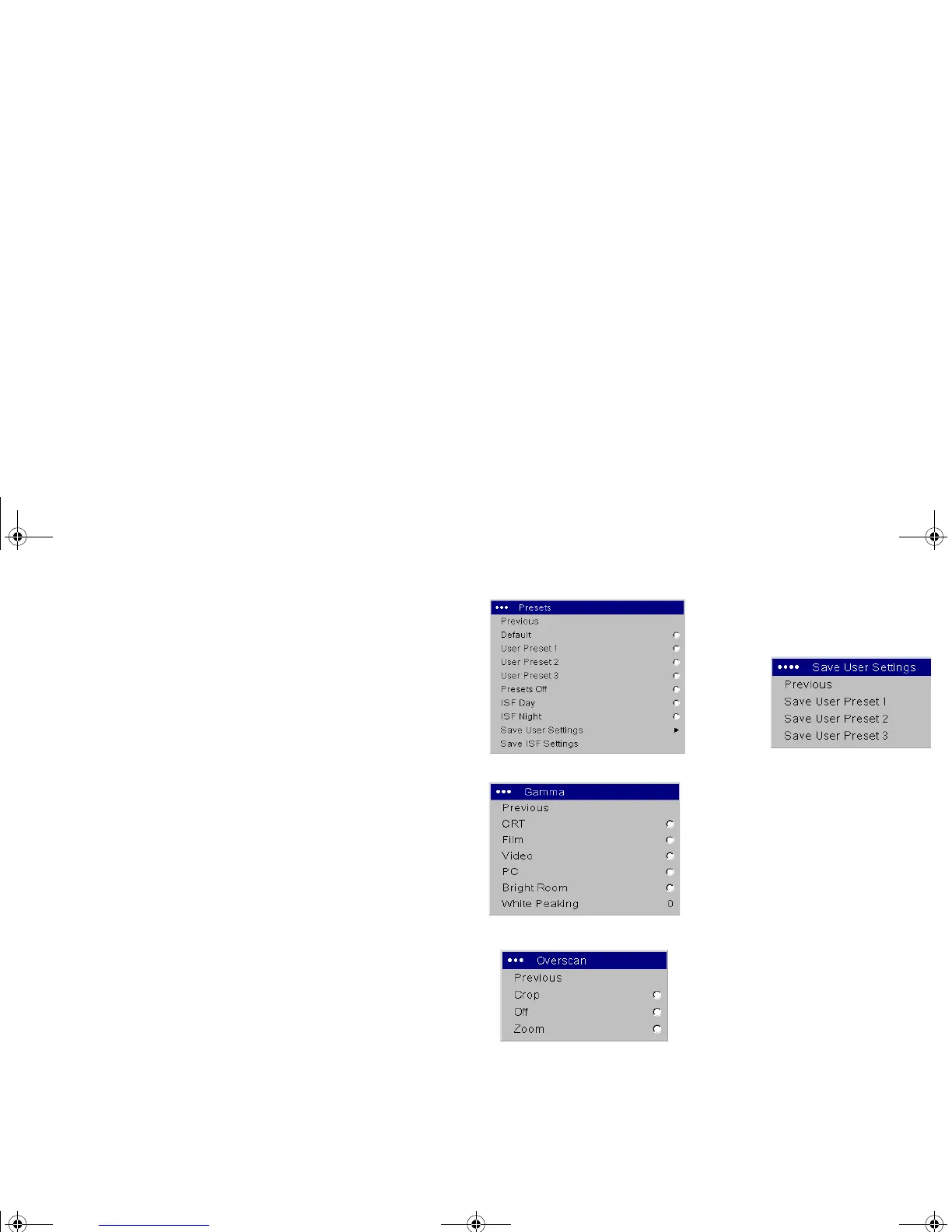 the Presets menu, then choose Save User 1, 2, or 3. You can recall these settings in