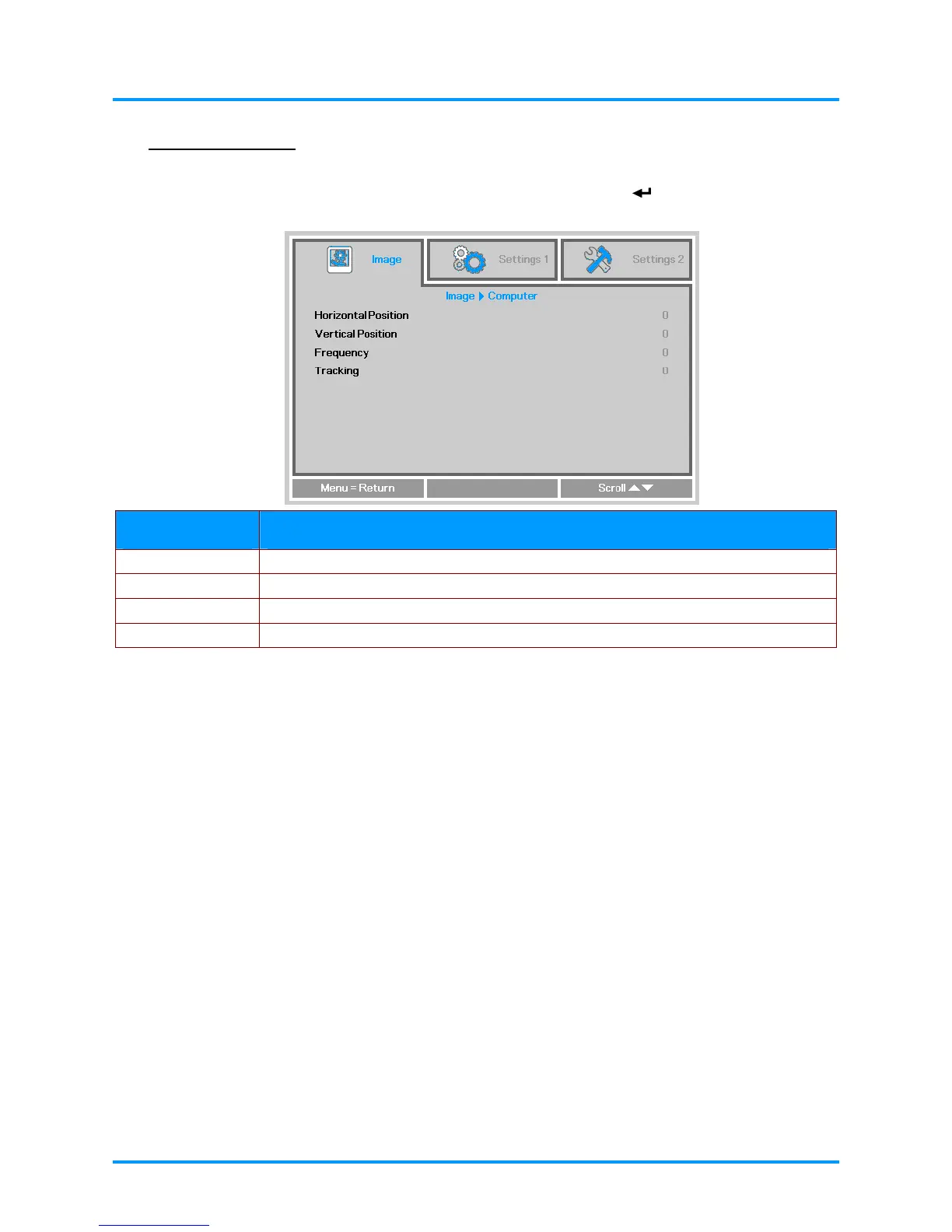 Press the ▲▼ buttons to move to the Computer menu and then press