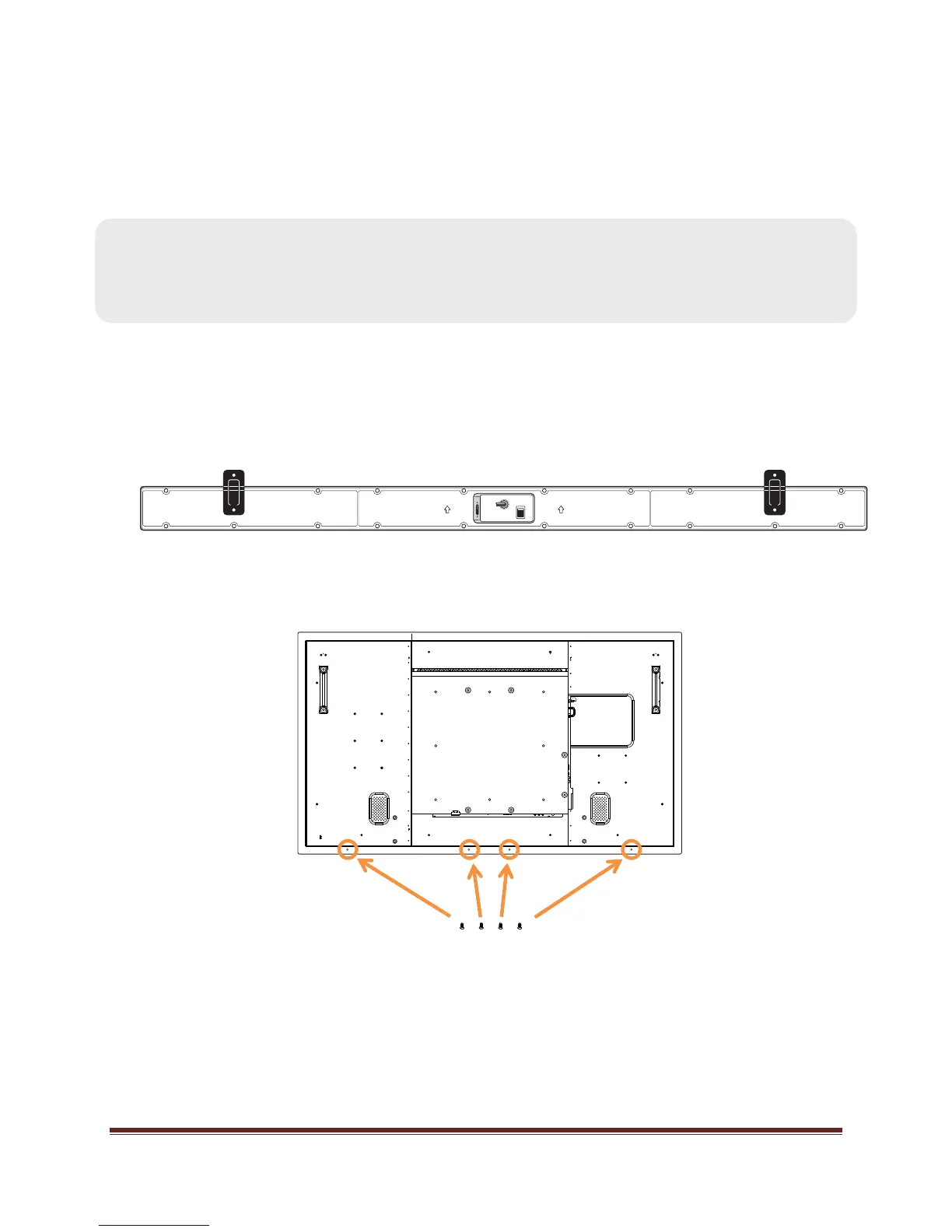 2. Attach the two small rectangular brackets to the sound bar with the provided screws as