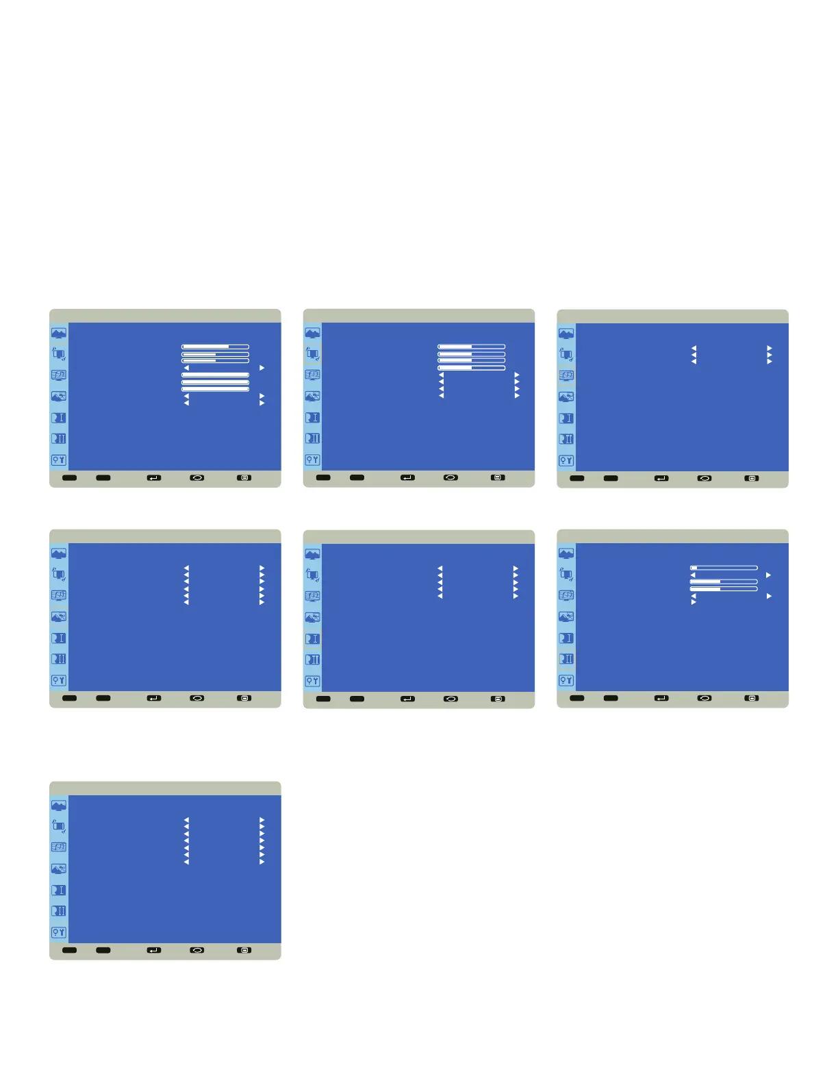 When your adjustments are complete, press the Back button to go to a different menu or press the Menu button to exit