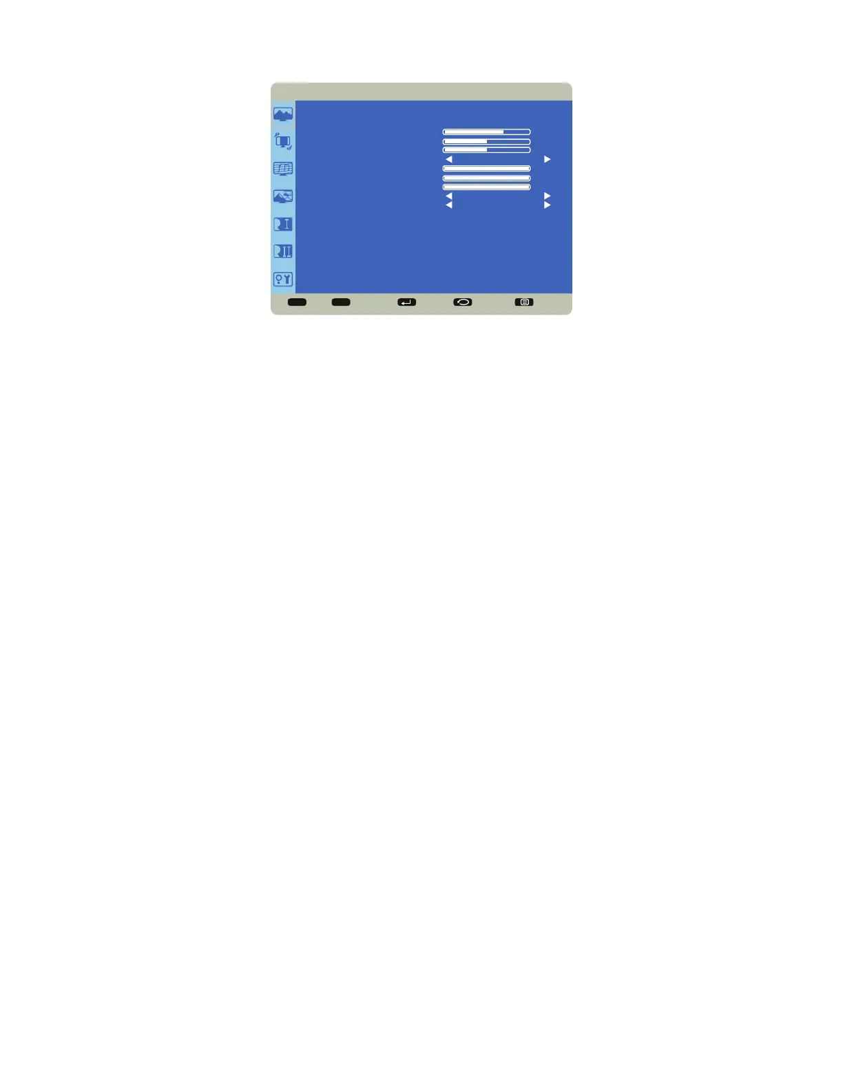 Color Control: allows the user to finely adjust individual red, green and blue colors. Color Temperature must be set to