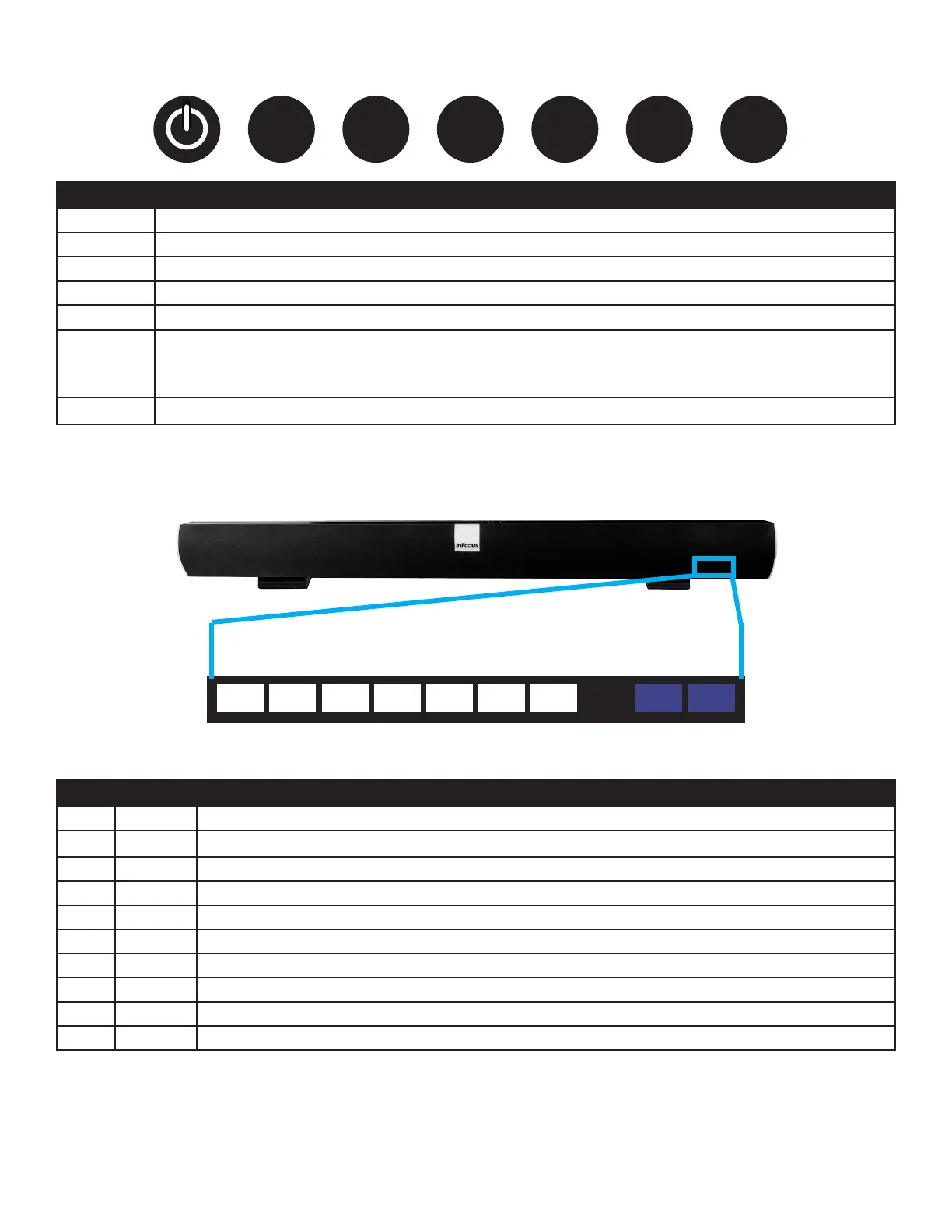 Power Turns the sound bar on and o.