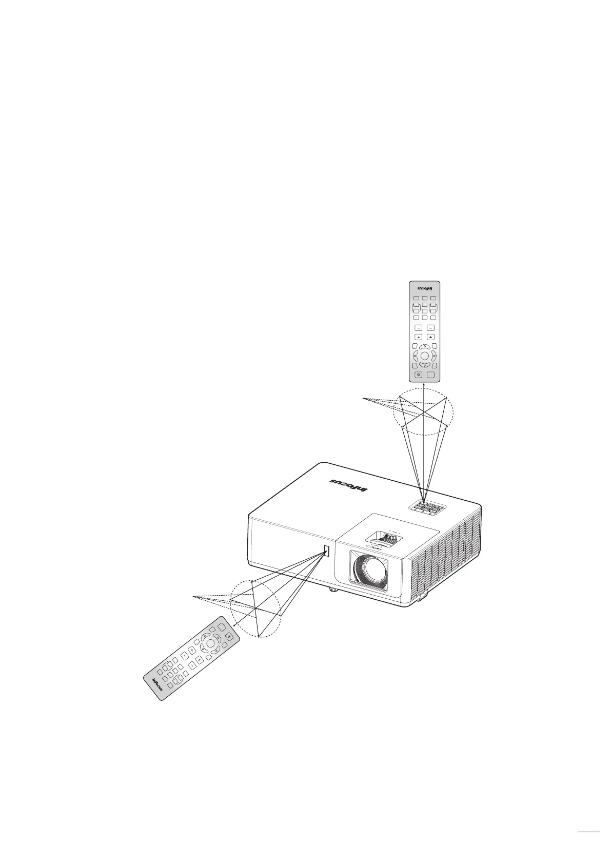Infra-Red (IR) remote control sensor is located on the top and front of the projector. Ensure to hold the remote