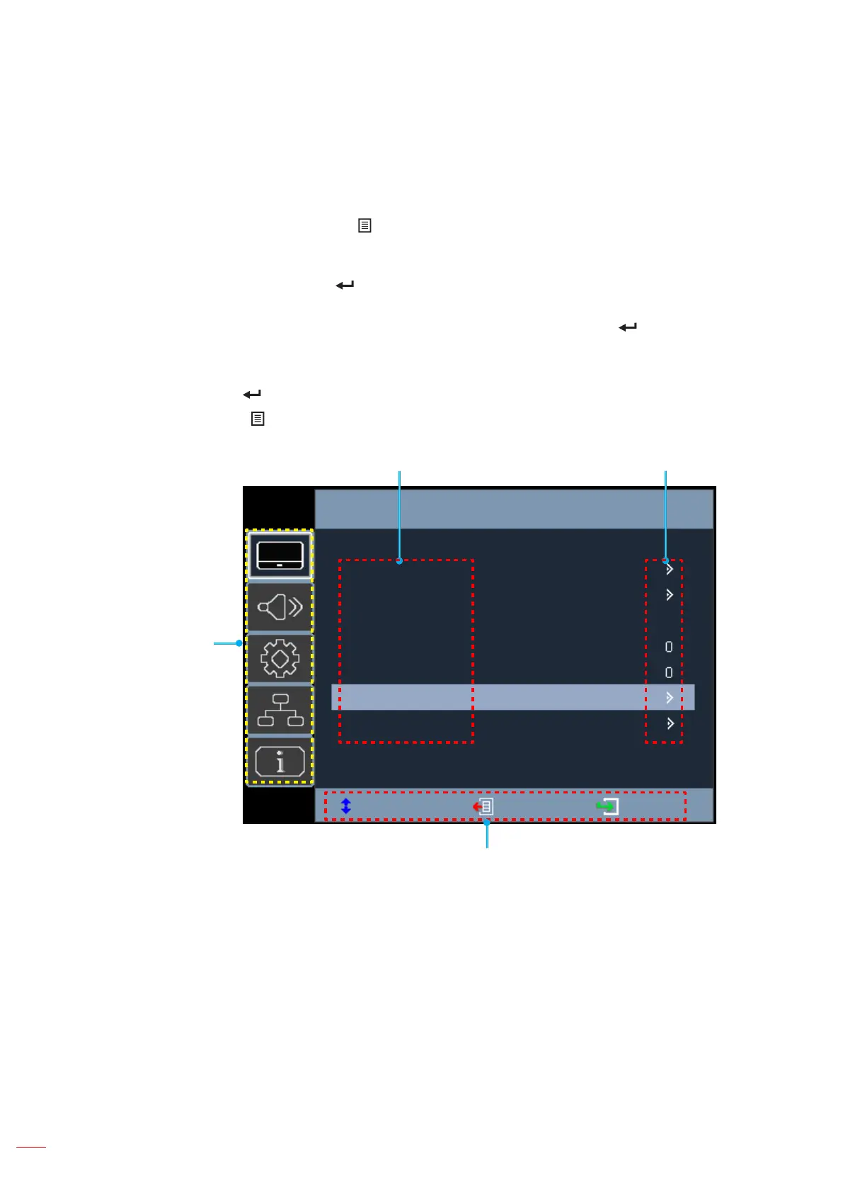 6. To exit, press the or Menu button again. The OSD menu will close and the projector will