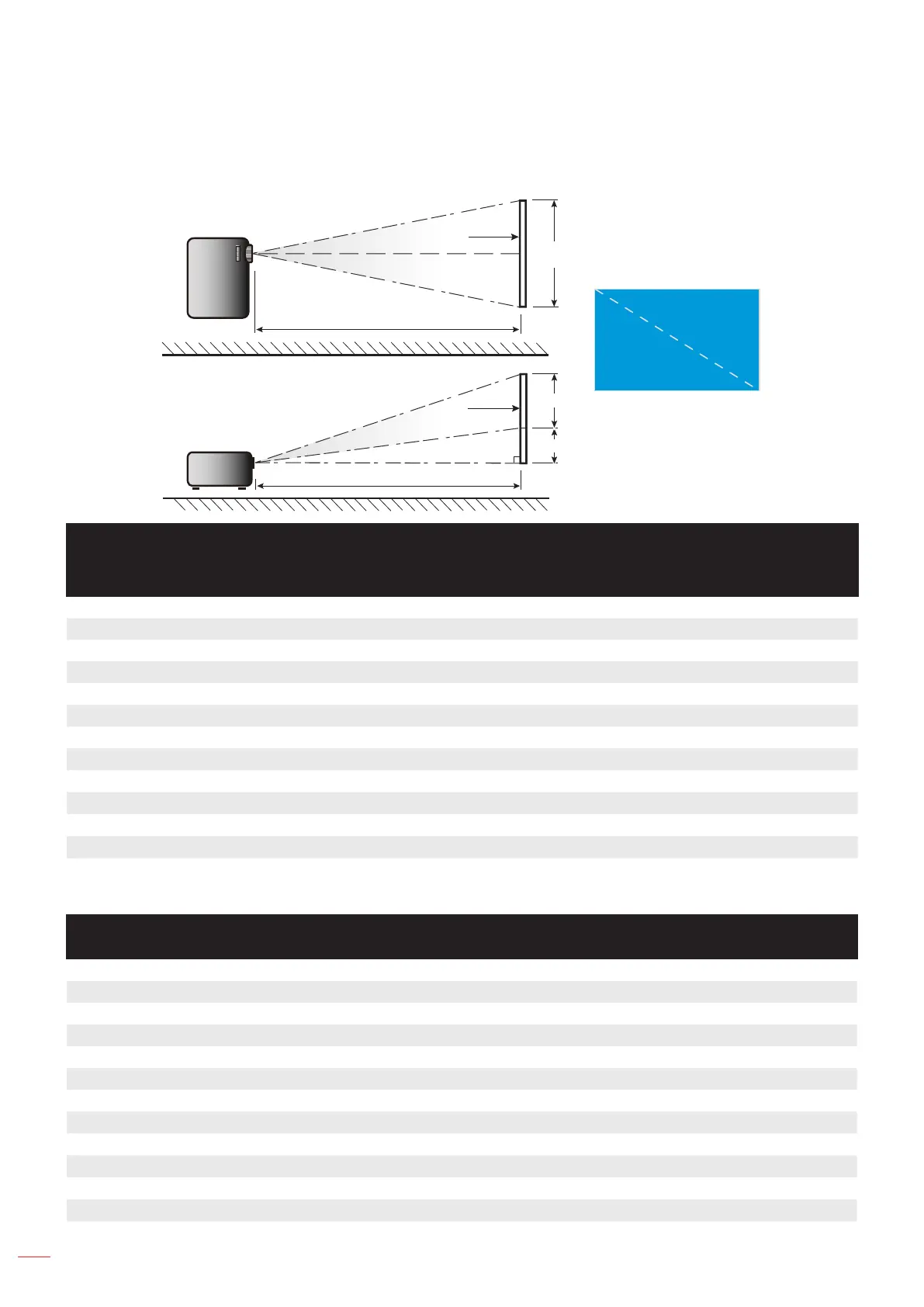 Projection image size is from 21” to 302” (0.5m to 7.7m).