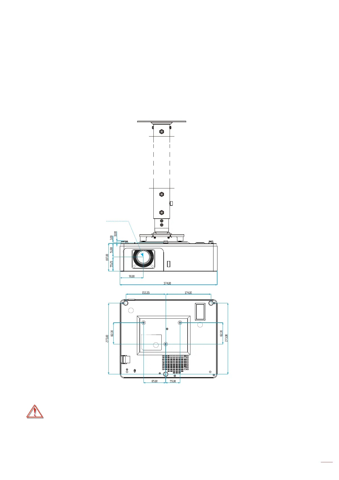If you wish to use a third party ceiling mount kit, please ensure the screws used to attach a mount to the projector