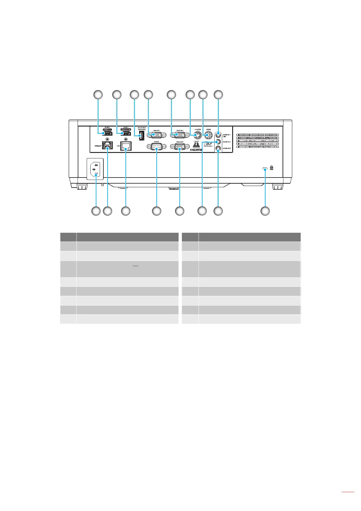 8. Audio Out Connector 16. HDBaseT Connector