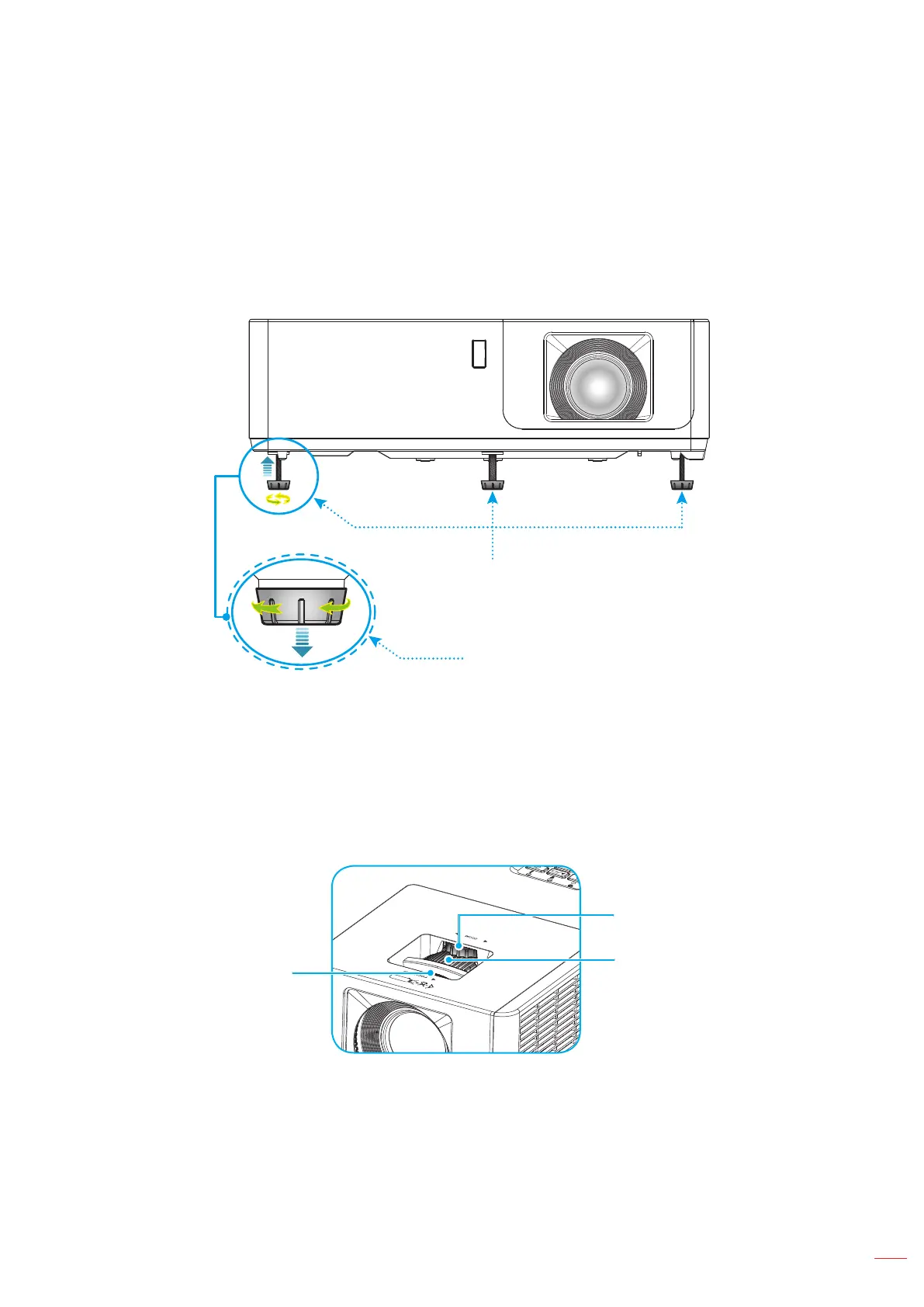 The projector is equipped with elevator feet for adjusting the image height.