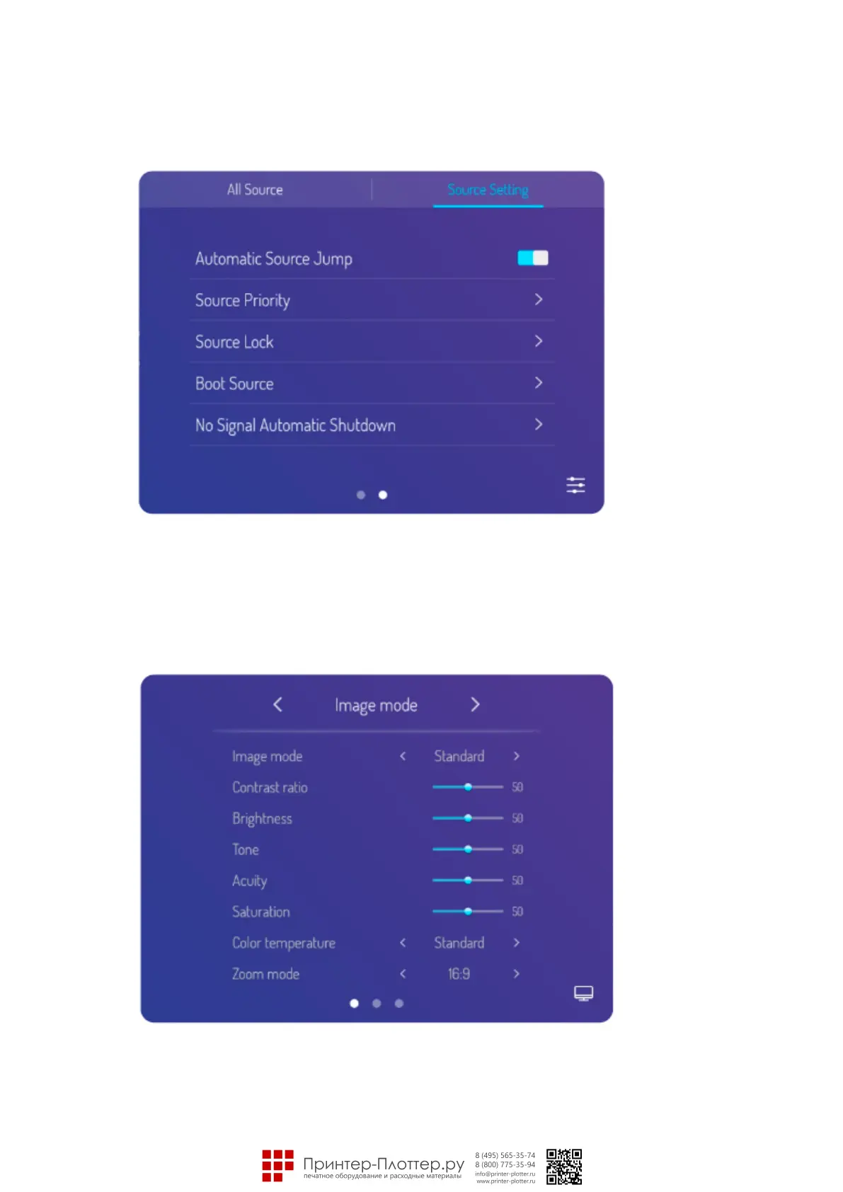 bottom right corner of signal source setting page to enter menu page, it can adjust the image mode, cool and
