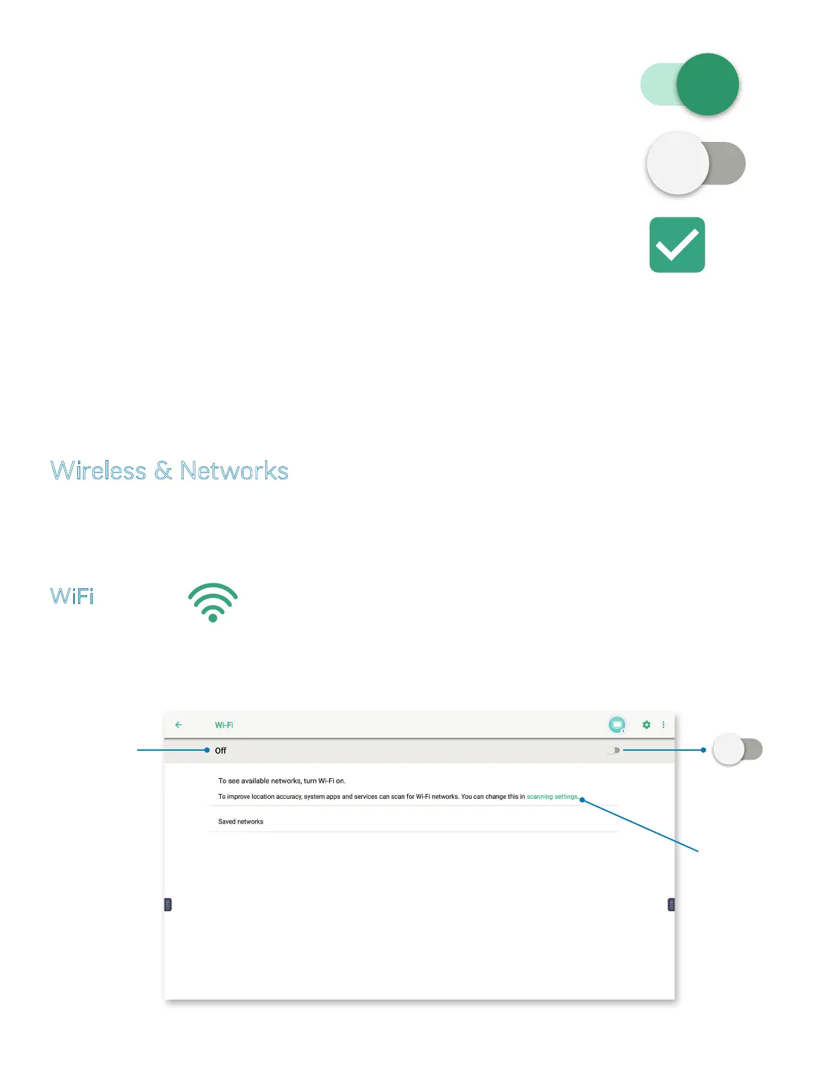 1) When WiFi settings are O, you have the option to turn on continuous WiFi and Bluetooth scanning by tapping on scanning
