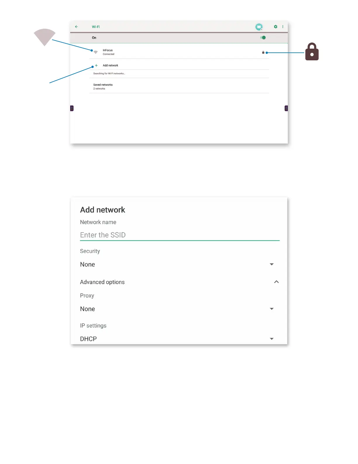 a) At the Add Network window, use the on-screen keyboard or a connected keyboard to enter the SSID.