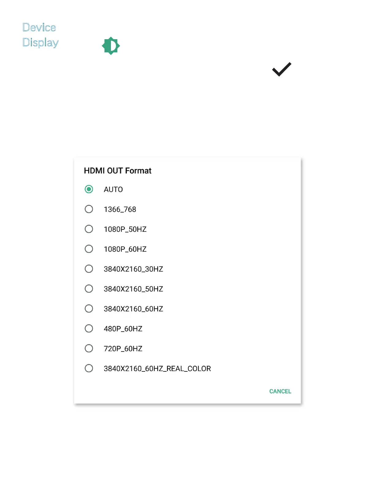 3) Tap HDMI OUT Format to select a frequency and a resolution.