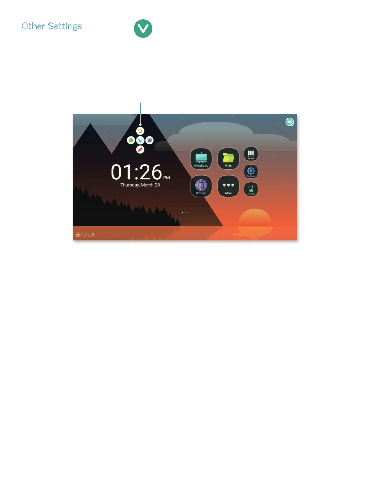 Tap Other Settings, or the Other Settings icon. The available settings are:
