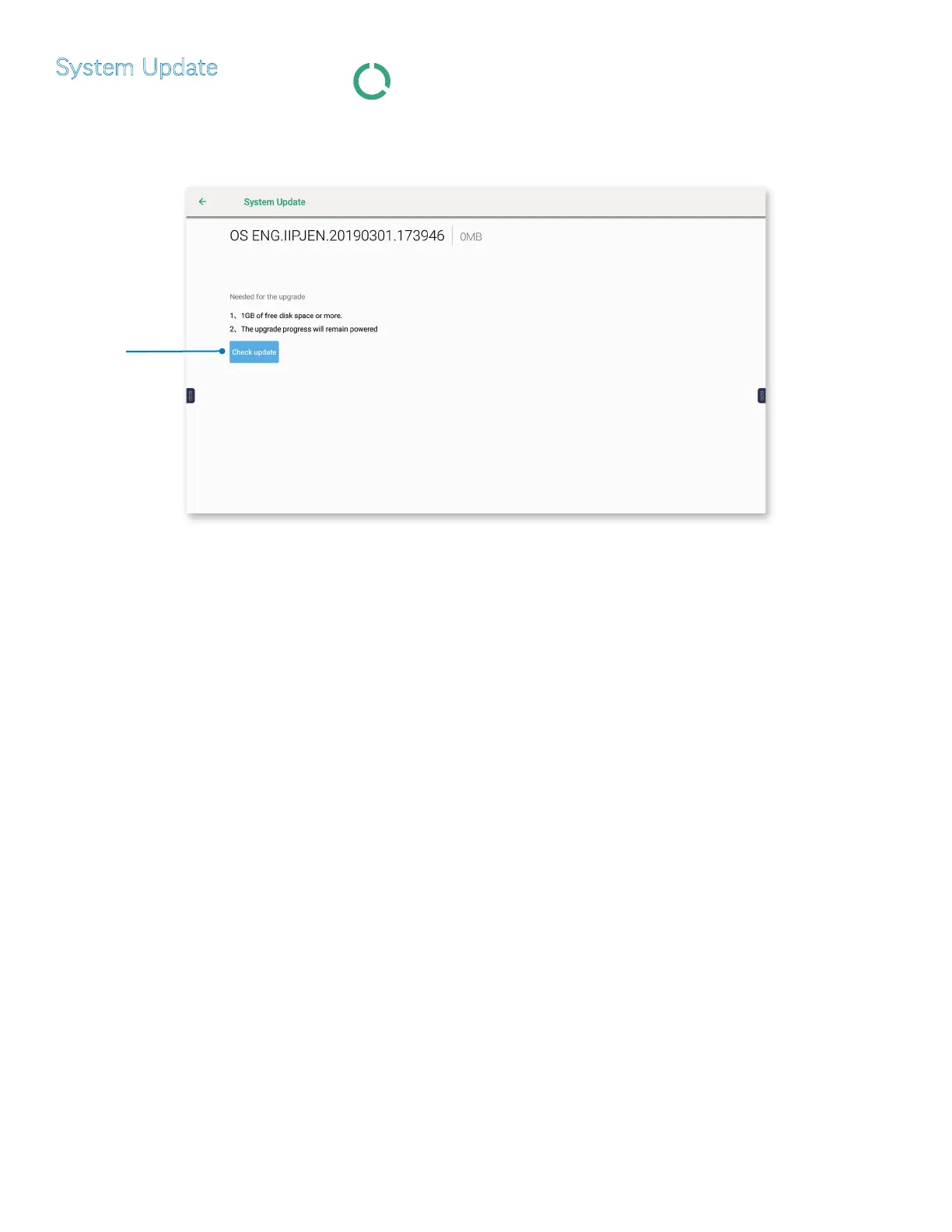 Tap System Update, or the System Update icon. Press Check update to see if an update is available.