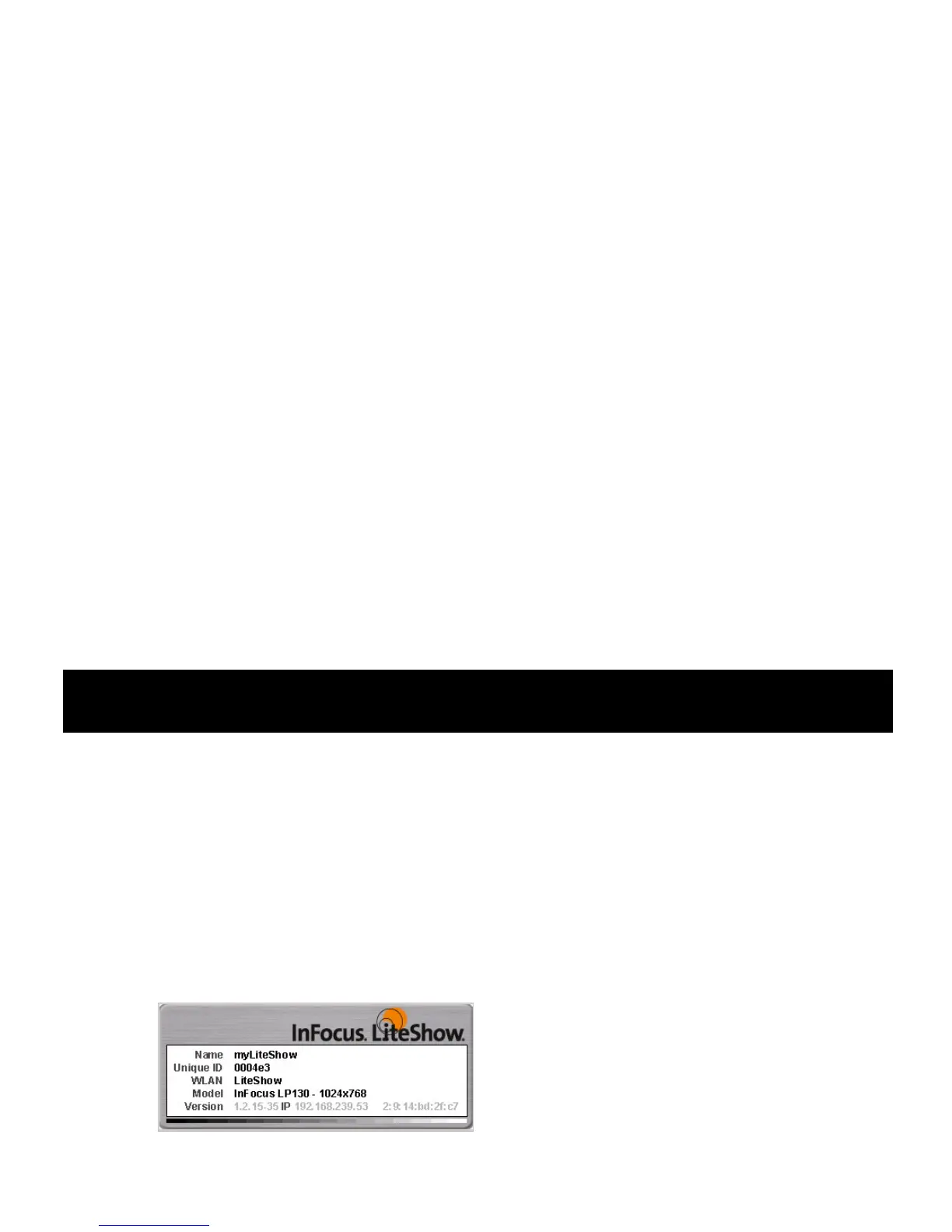 • Model: The model number of the projector the LiteShow adapter is attached to.