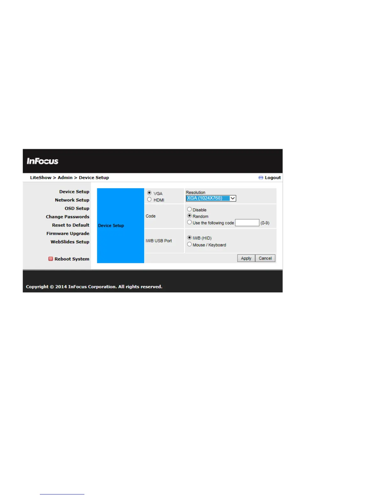 InFocus LITESHOW4 - System Management and Updates; Device Setup Configuration