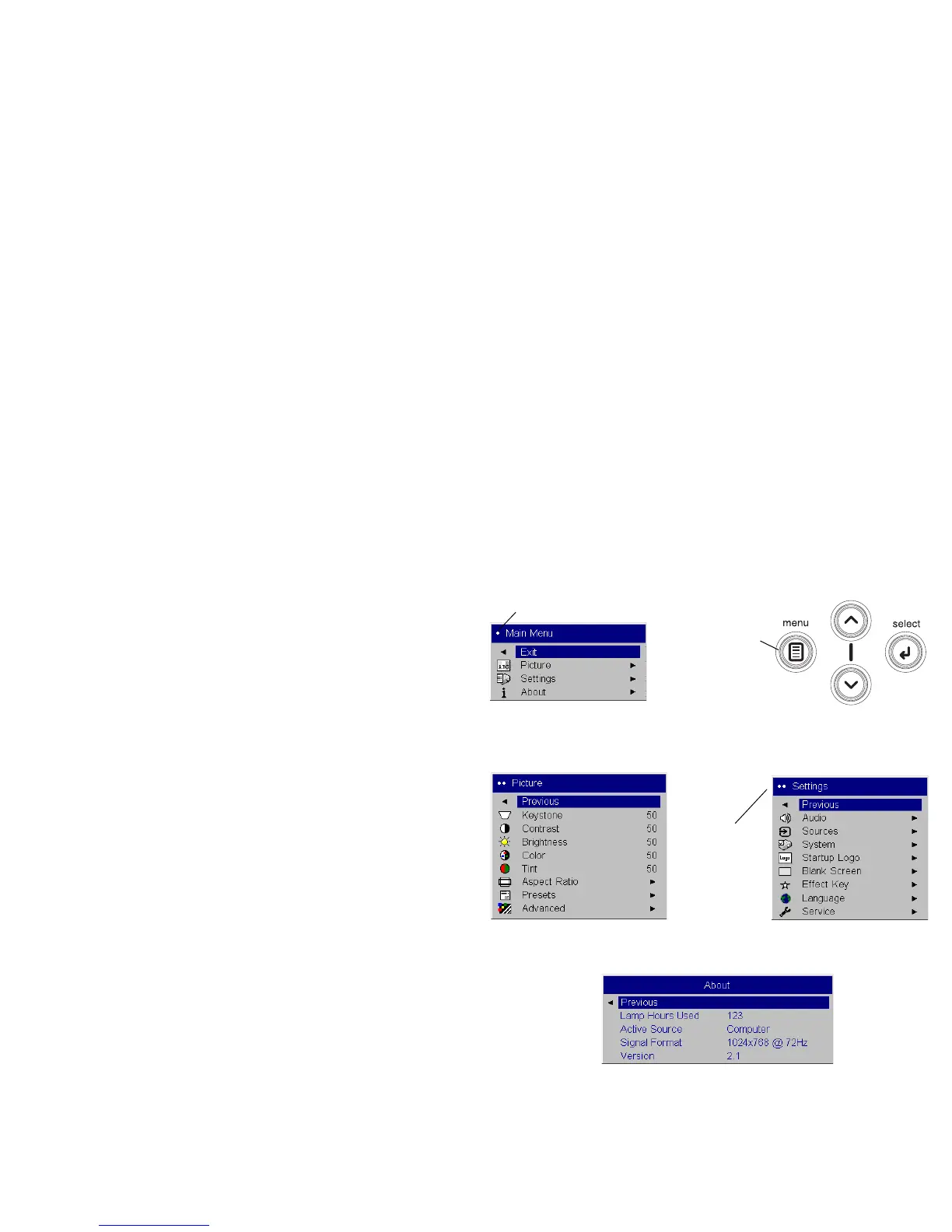 matically close after 60 seconds if no buttons are pressed.) The Main menu