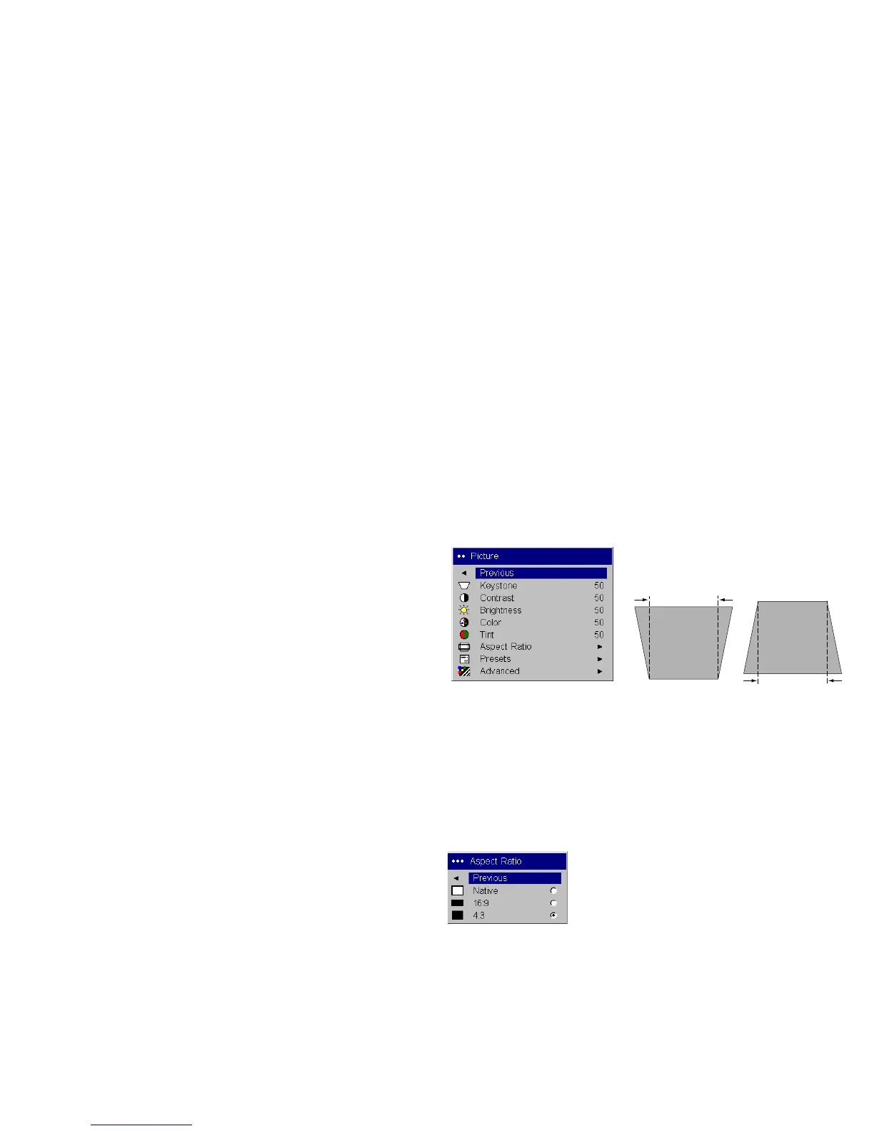 Keystone: adjusts the image vertically and makes a squarer image. You can