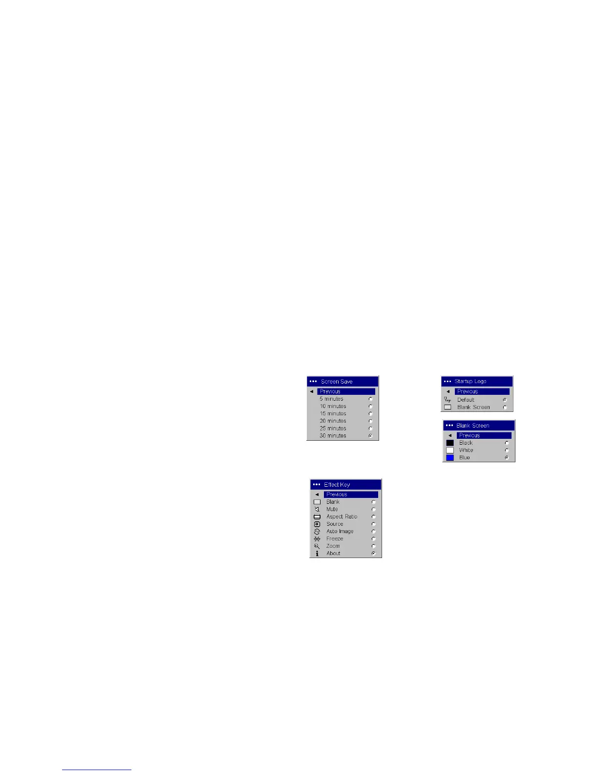 Screen Save: automatically blanks the screen with a black color after no sig-
