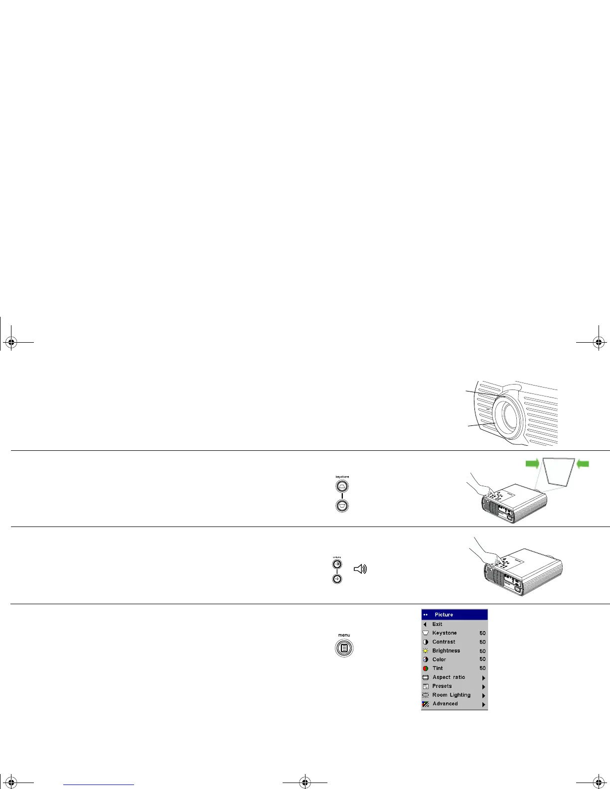 pad. Press the top Keystone button to reduce the upper part of the image,