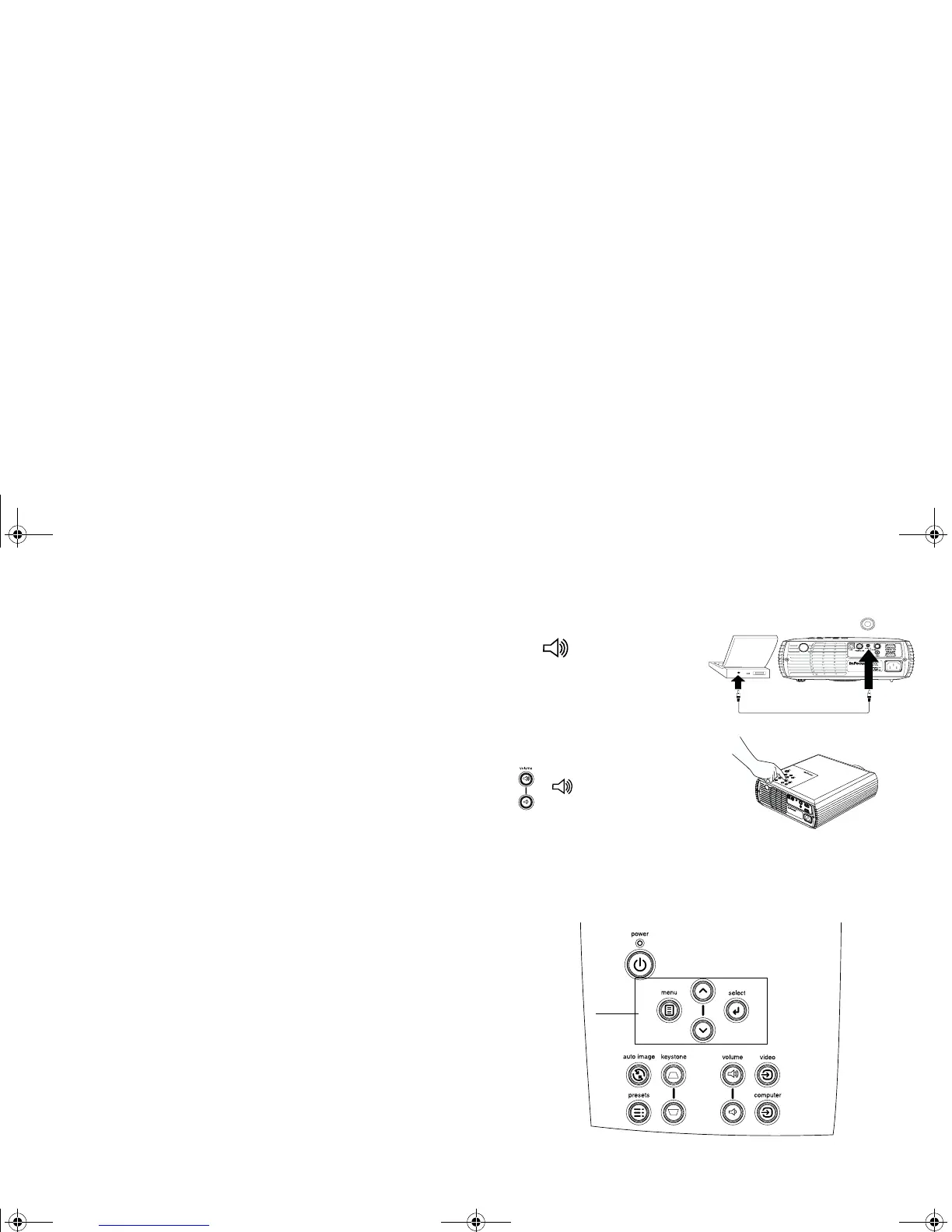 To use the projector’s speaker, connect your source to the Audio In connec-