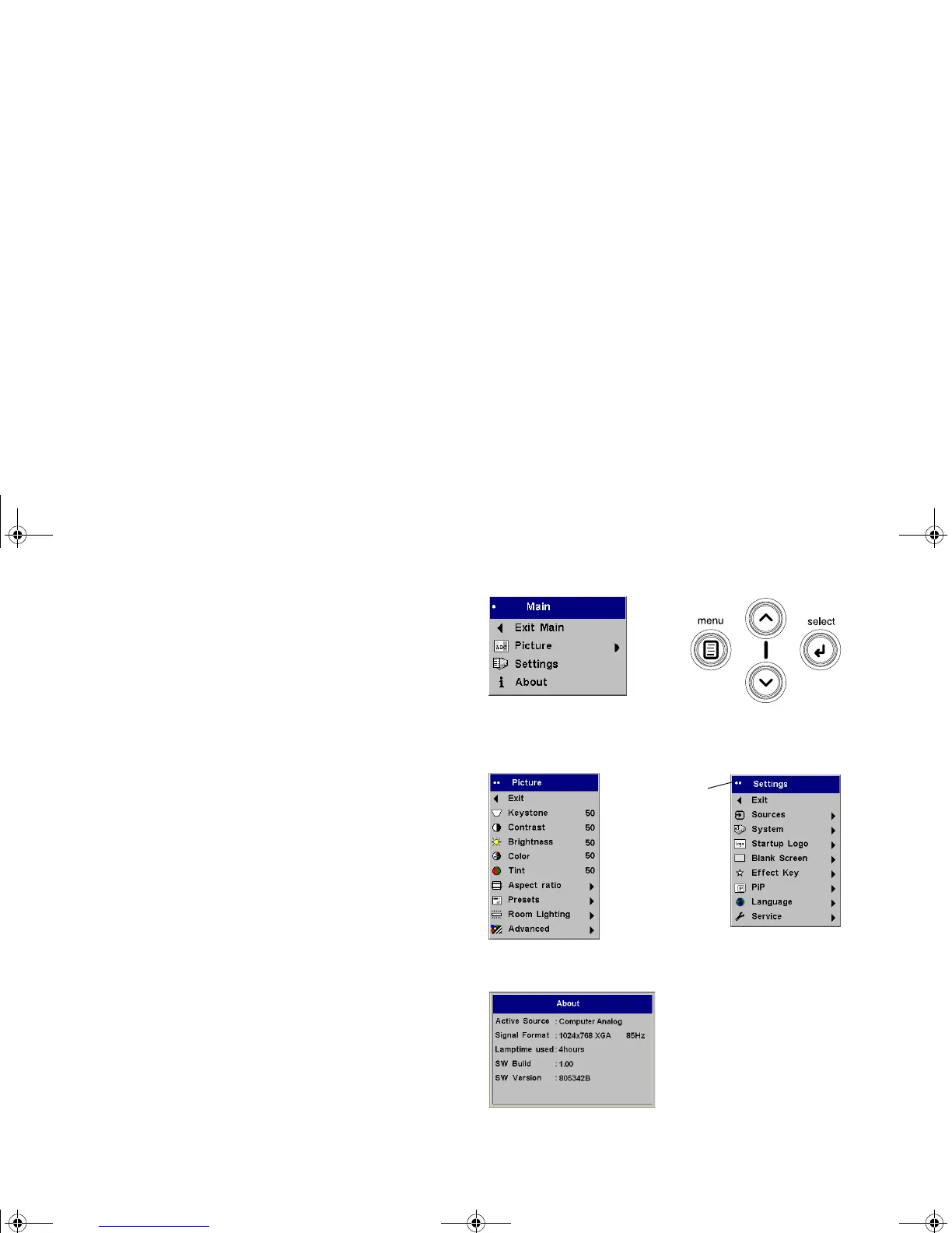 menus automatically close after 60 seconds if no buttons are pressed.) The