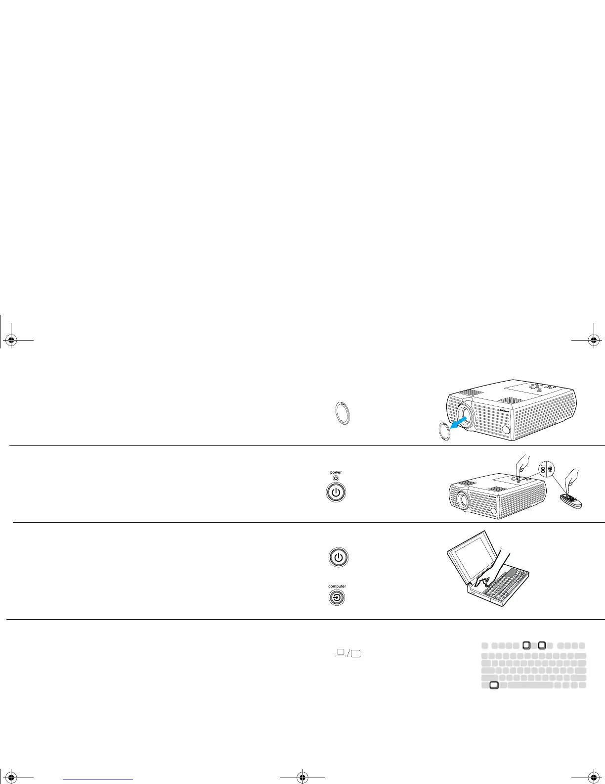 The computer’s image should appear on the projection screen. If it doesn’t,