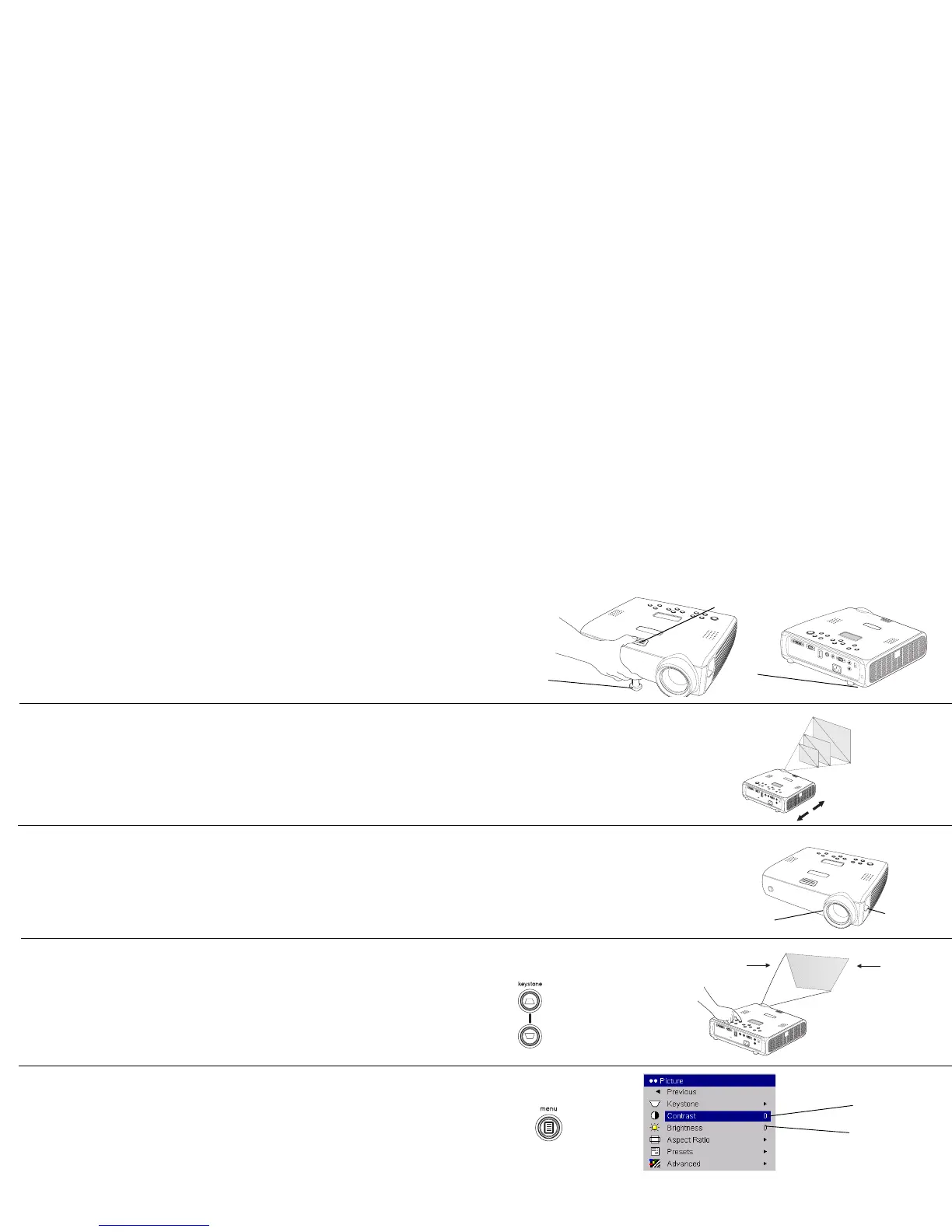 Adjust the height of the projector, if necessary, by pressing the release but-