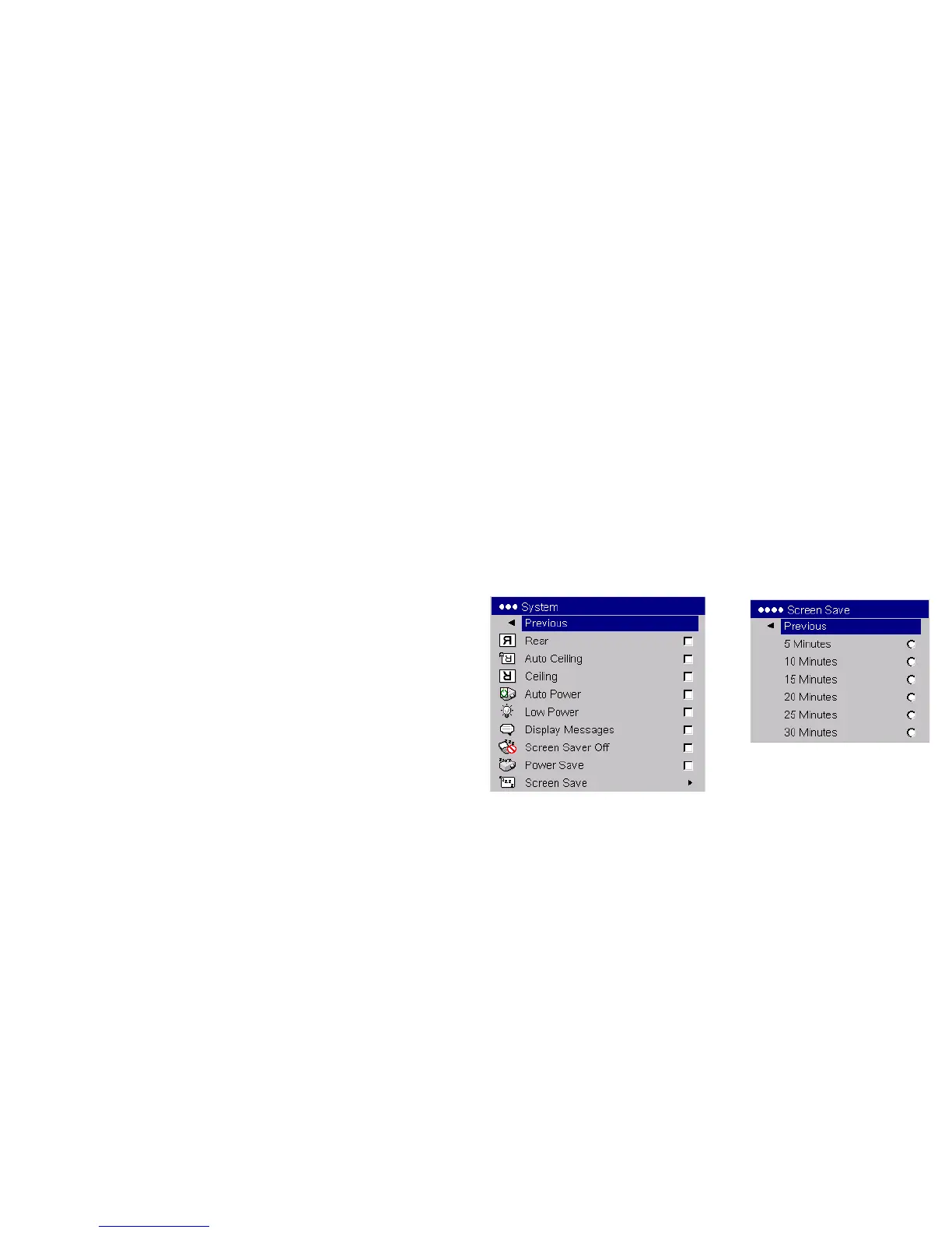 Screen Save: automatically blanks the screen with a black color after no sig-