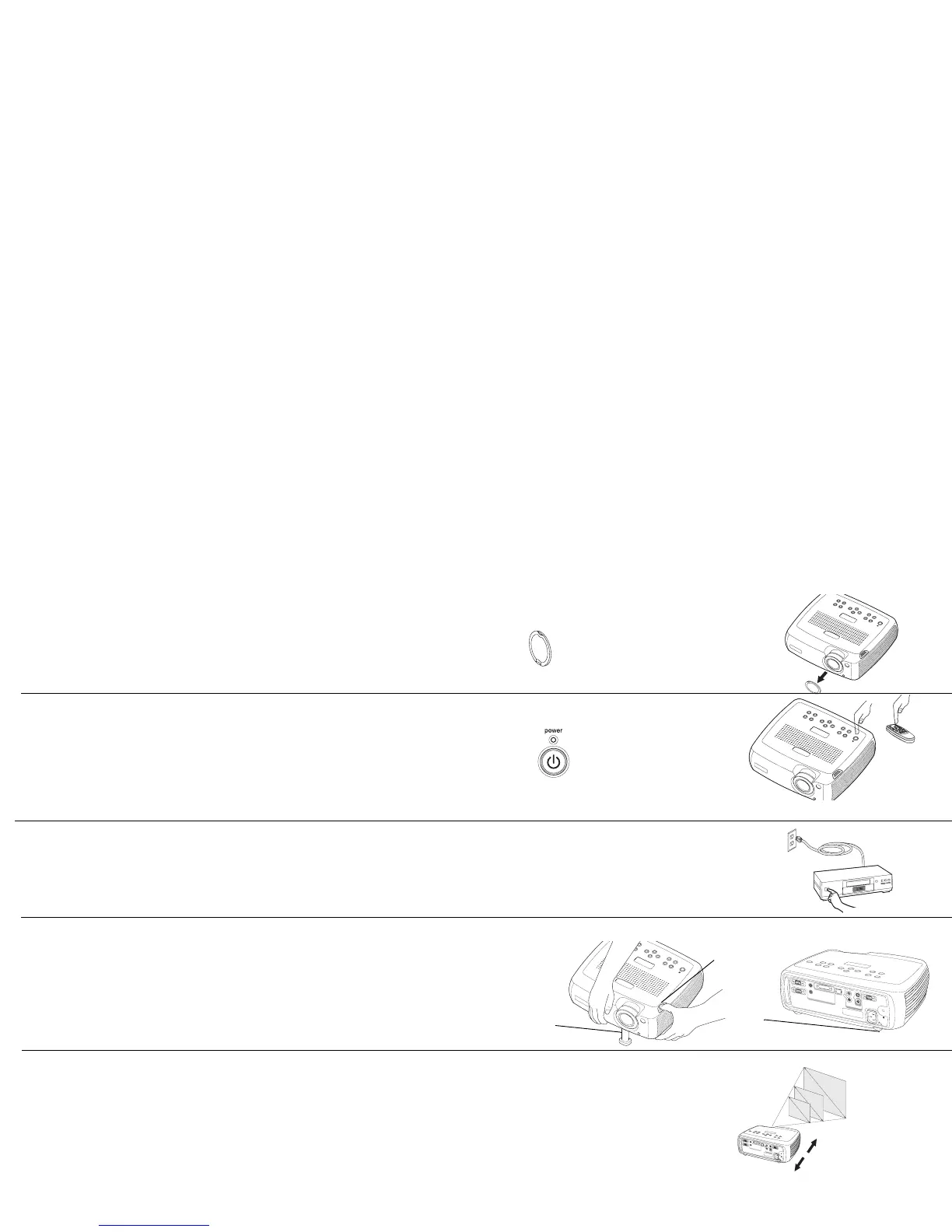 angle to the screen. See page 42 for a table listing screen sizes and distances