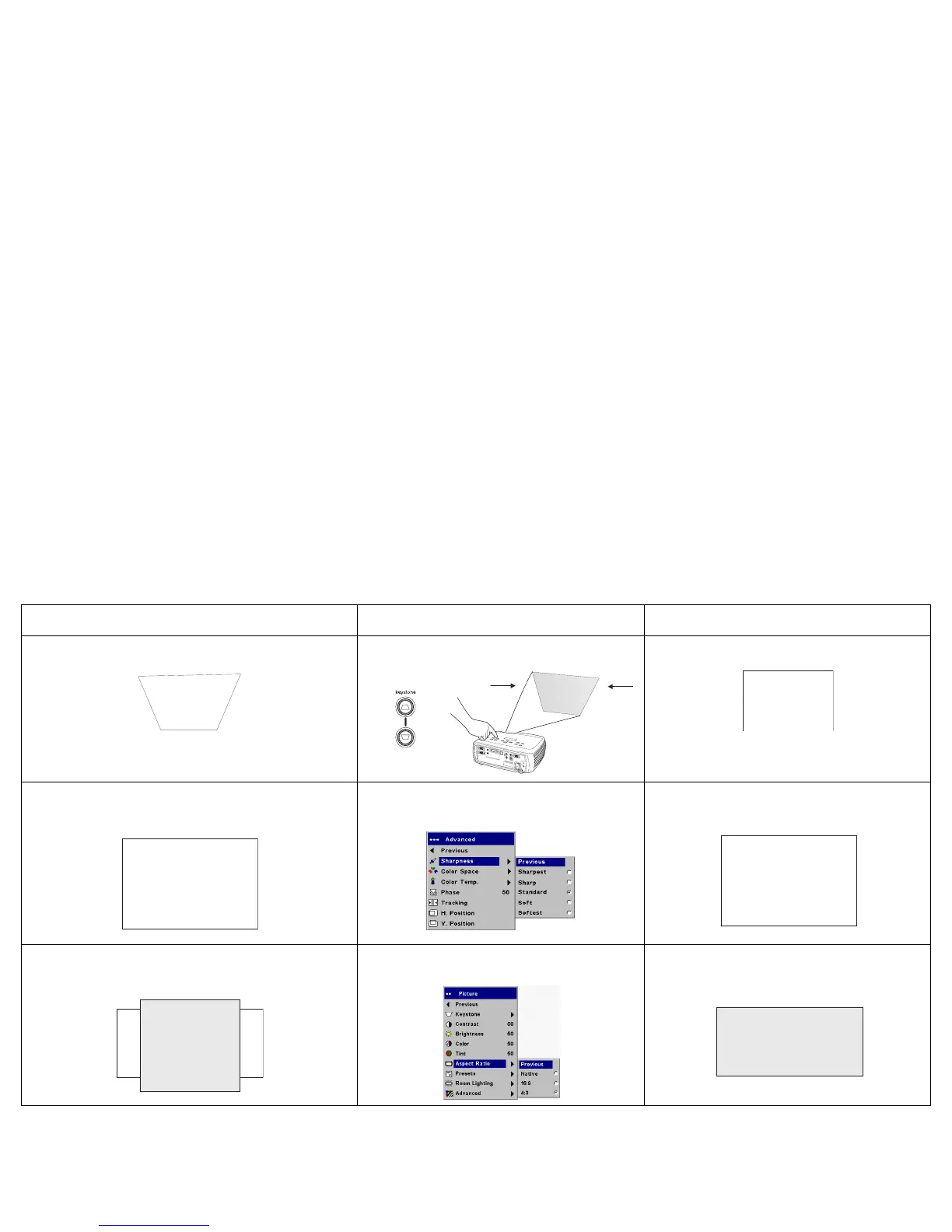 Image not square Adjust keystone on keypad or Picture menu