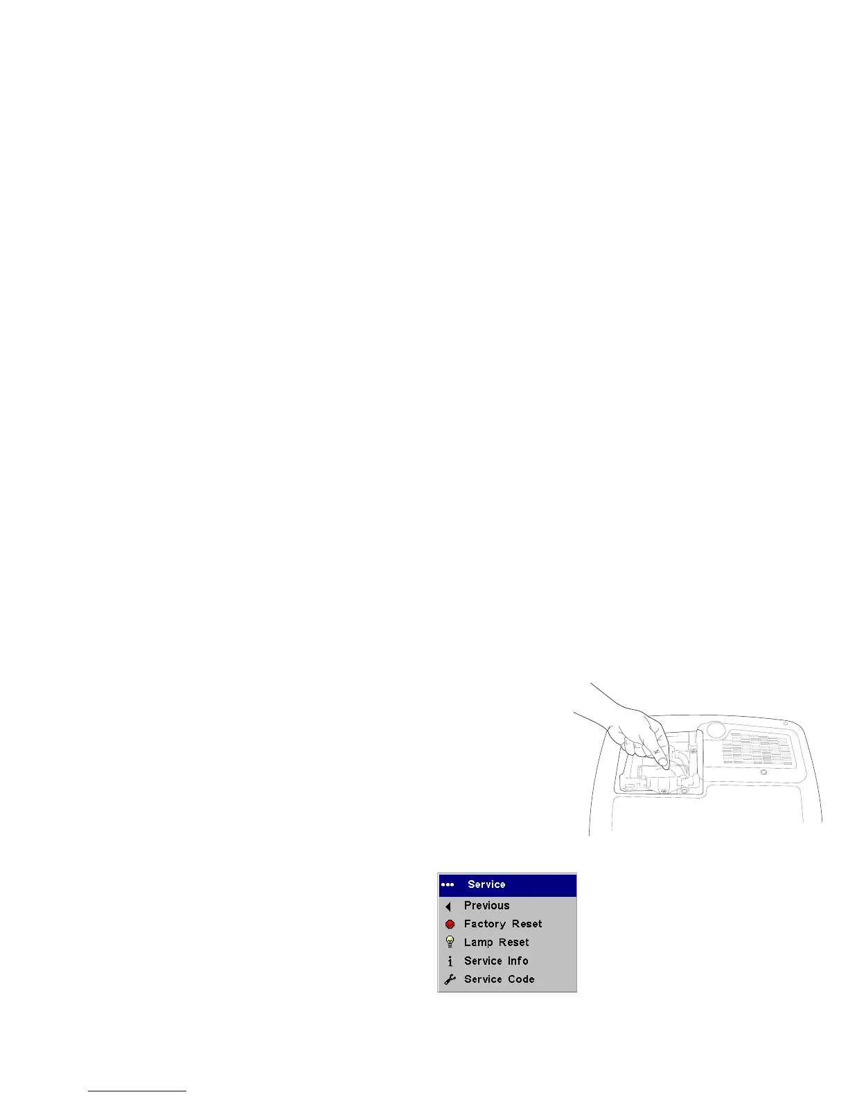 on the projector. You can also navigate to the Settings>Service menu and