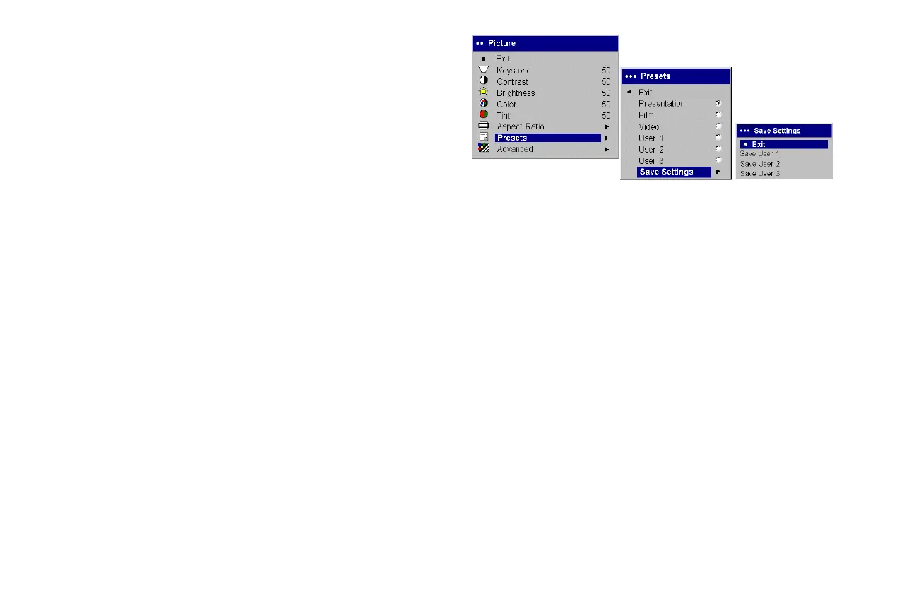 adjust the image, select Save User in the Presets menu, then select Yes. You