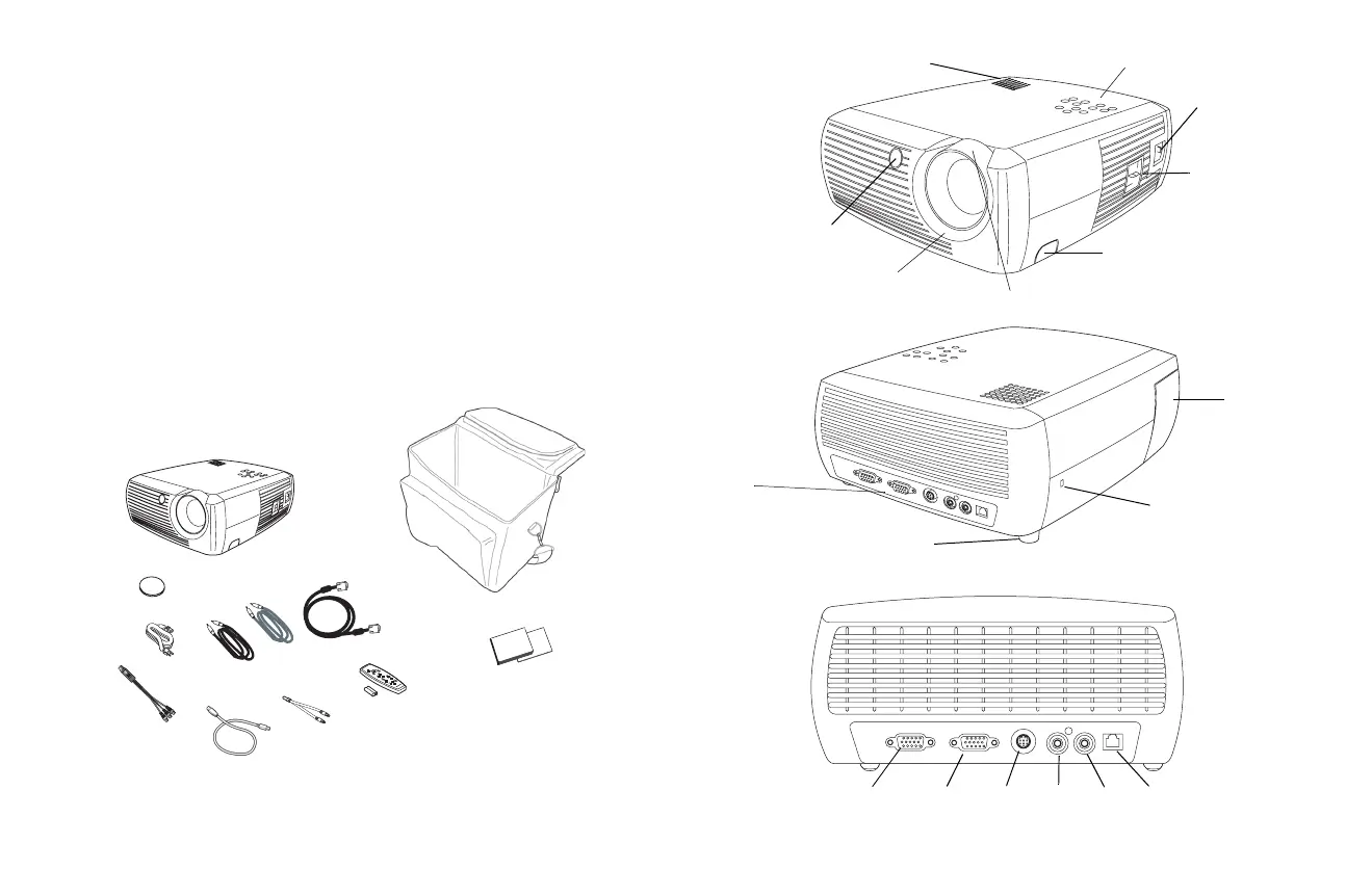 The projector has native SVGA 800x600 resolution and comes with the fol-