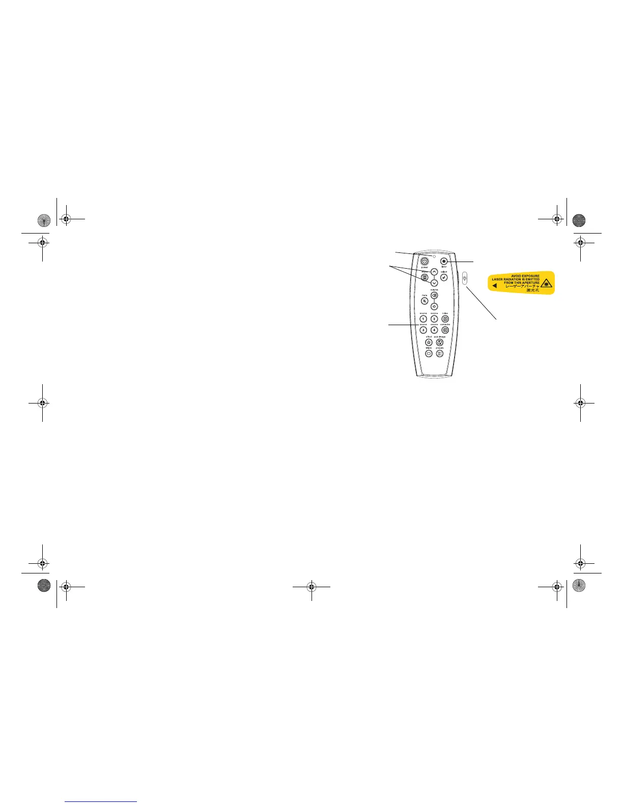 To use the laser pointer, press and hold the Laser button. The laser turns off