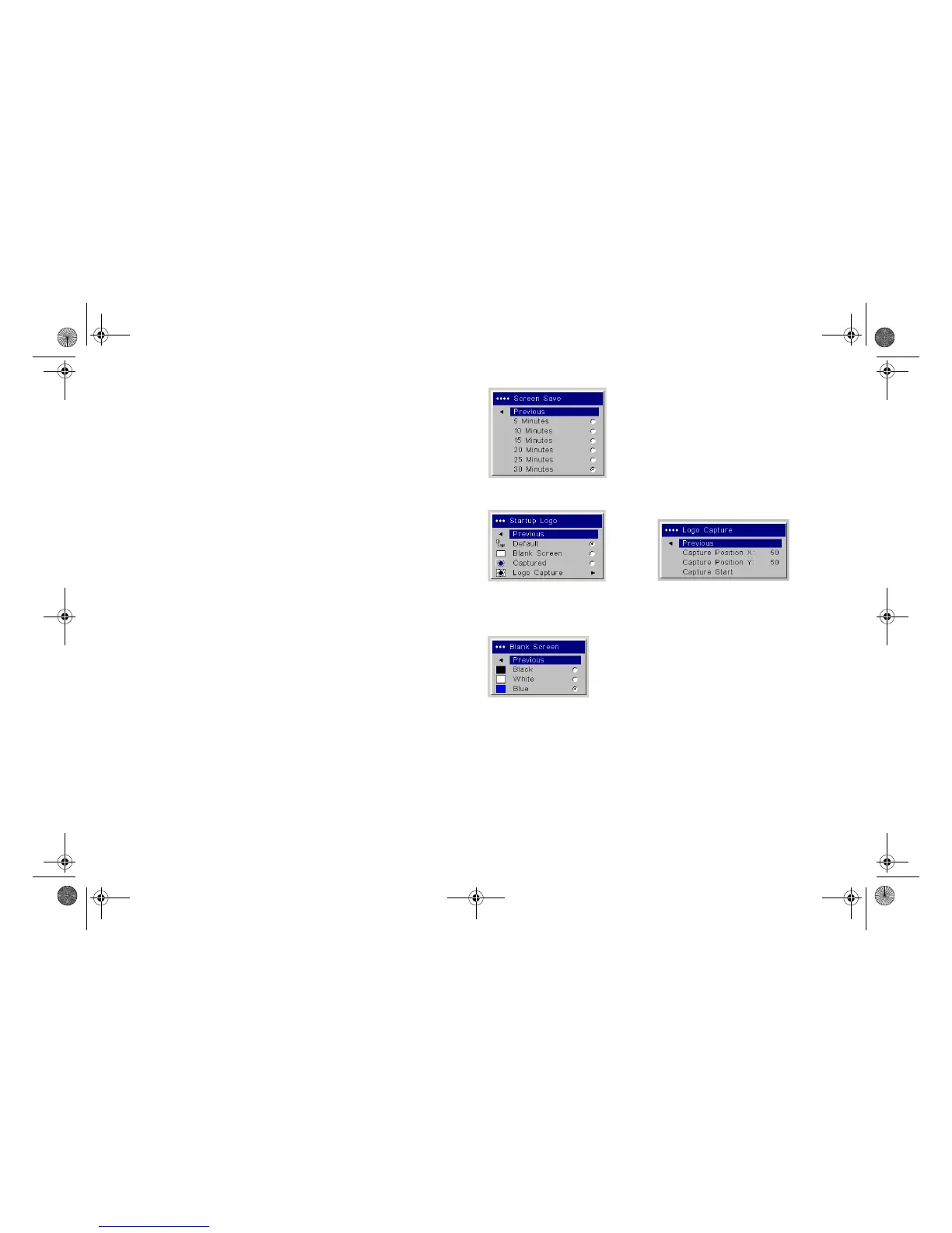 Blank Screen: determines what color is displayed when you press the