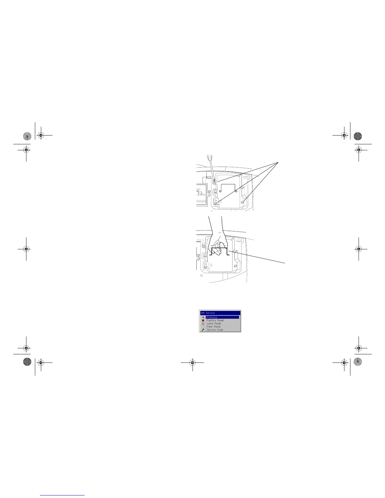 7 Replace the cover over the lamp module by inserting the tabs into the