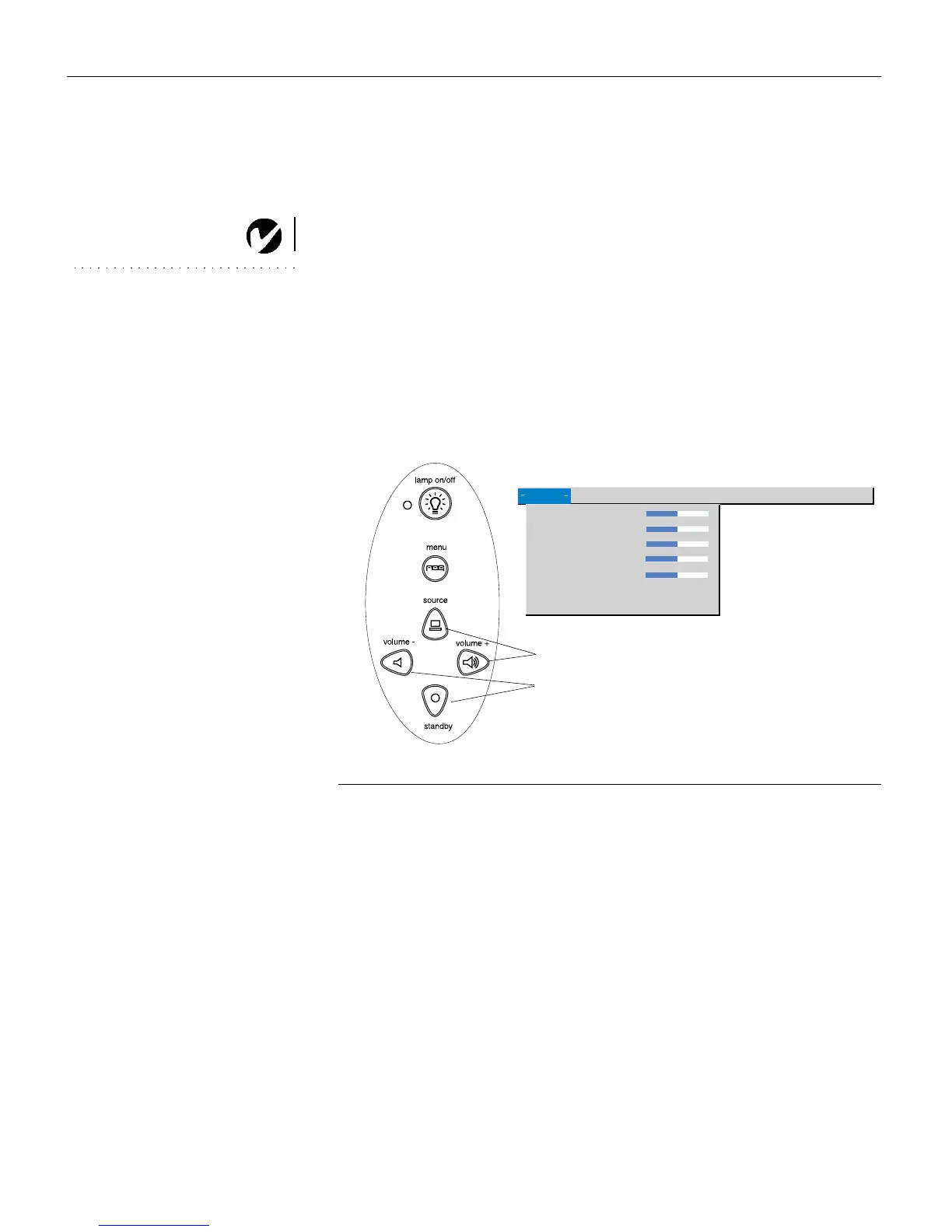 keypad or remote. This changes the volume, source, and standby