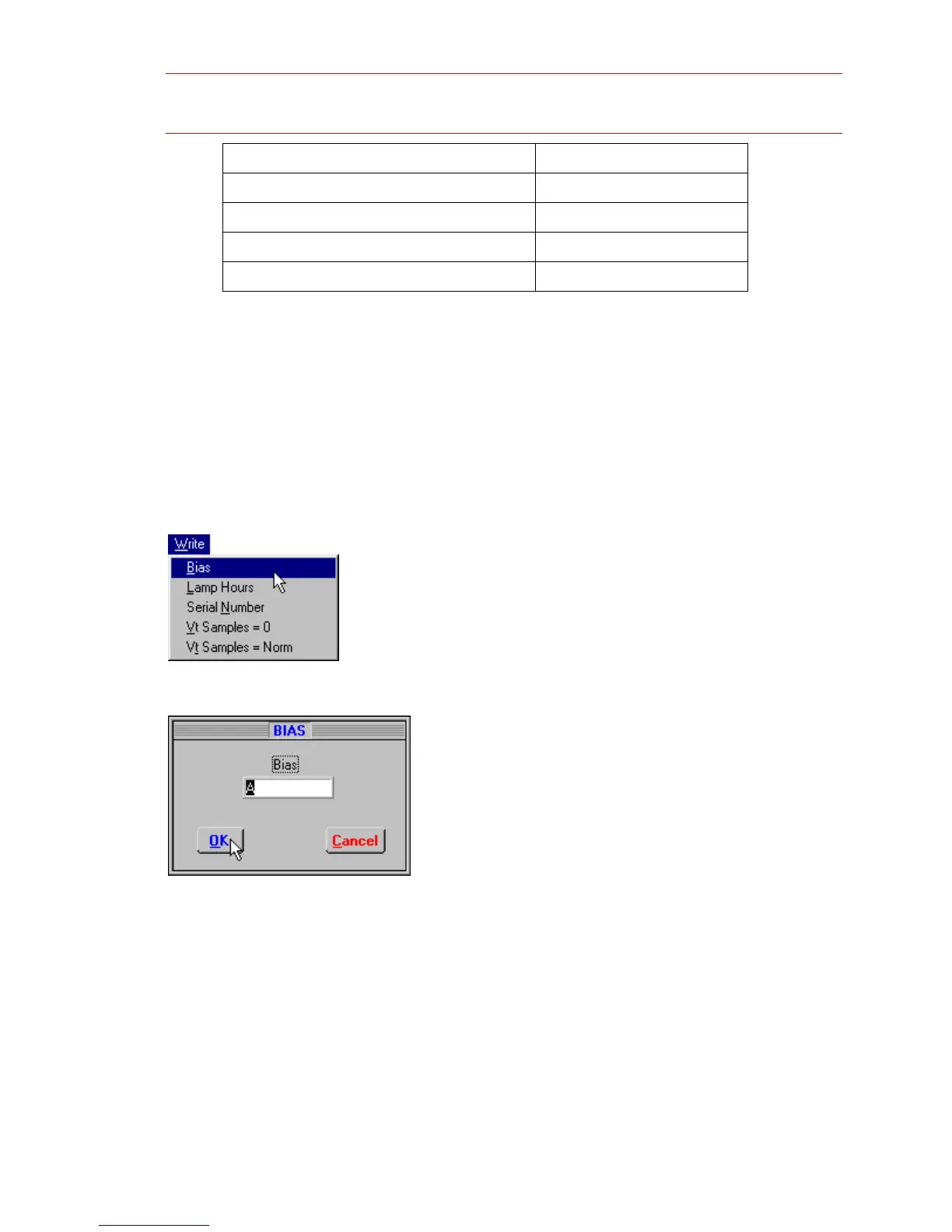 LP340/340B. Use the following table to determine the correct bias setting for the LP350.