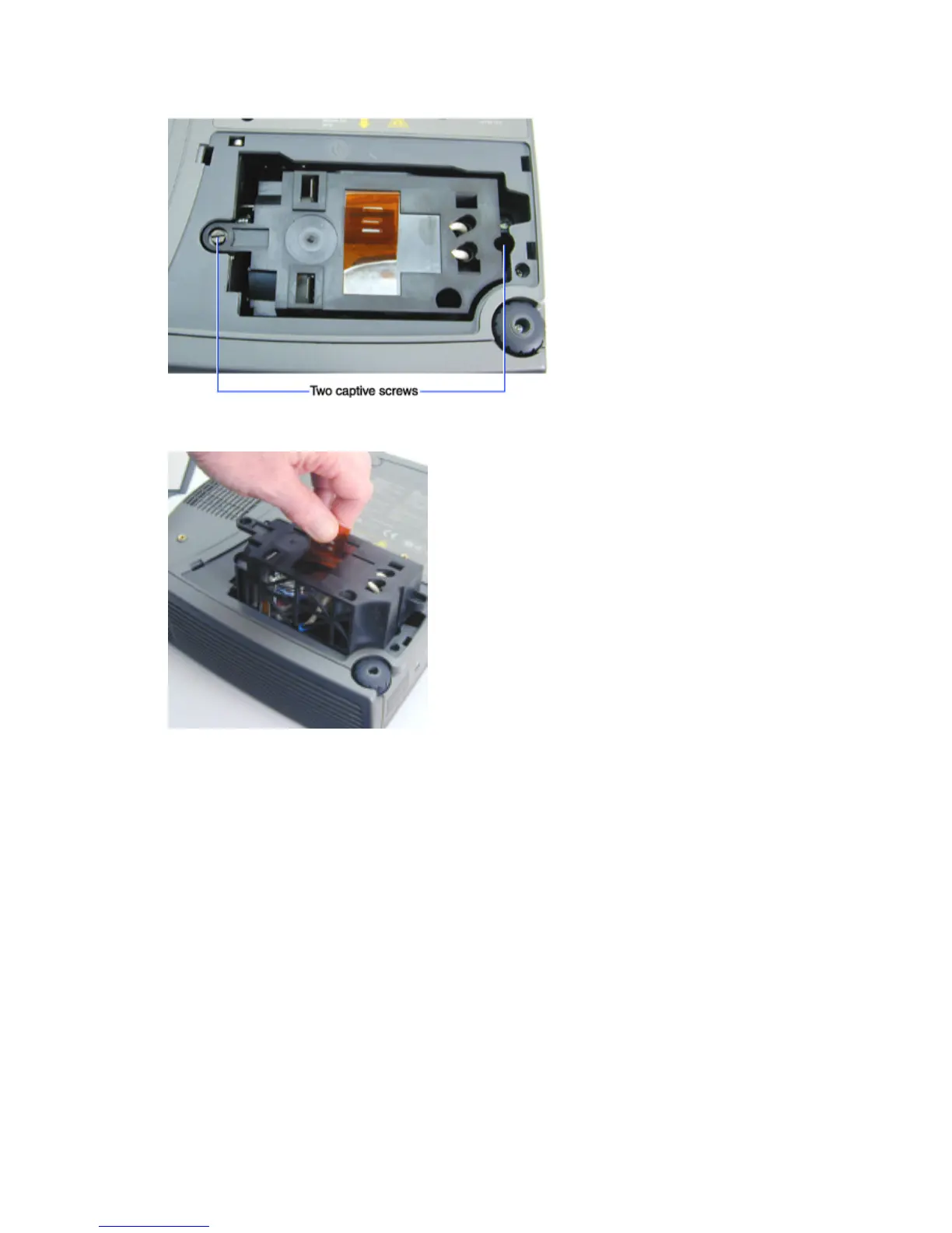 3 Loosen the two captive screws that secure the lamp to the lamp housing.