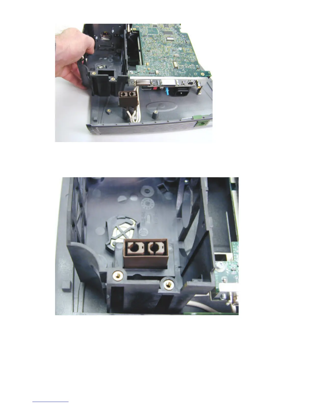 Then lower the chassis into the top case, making sure the lamp connector emerges through its