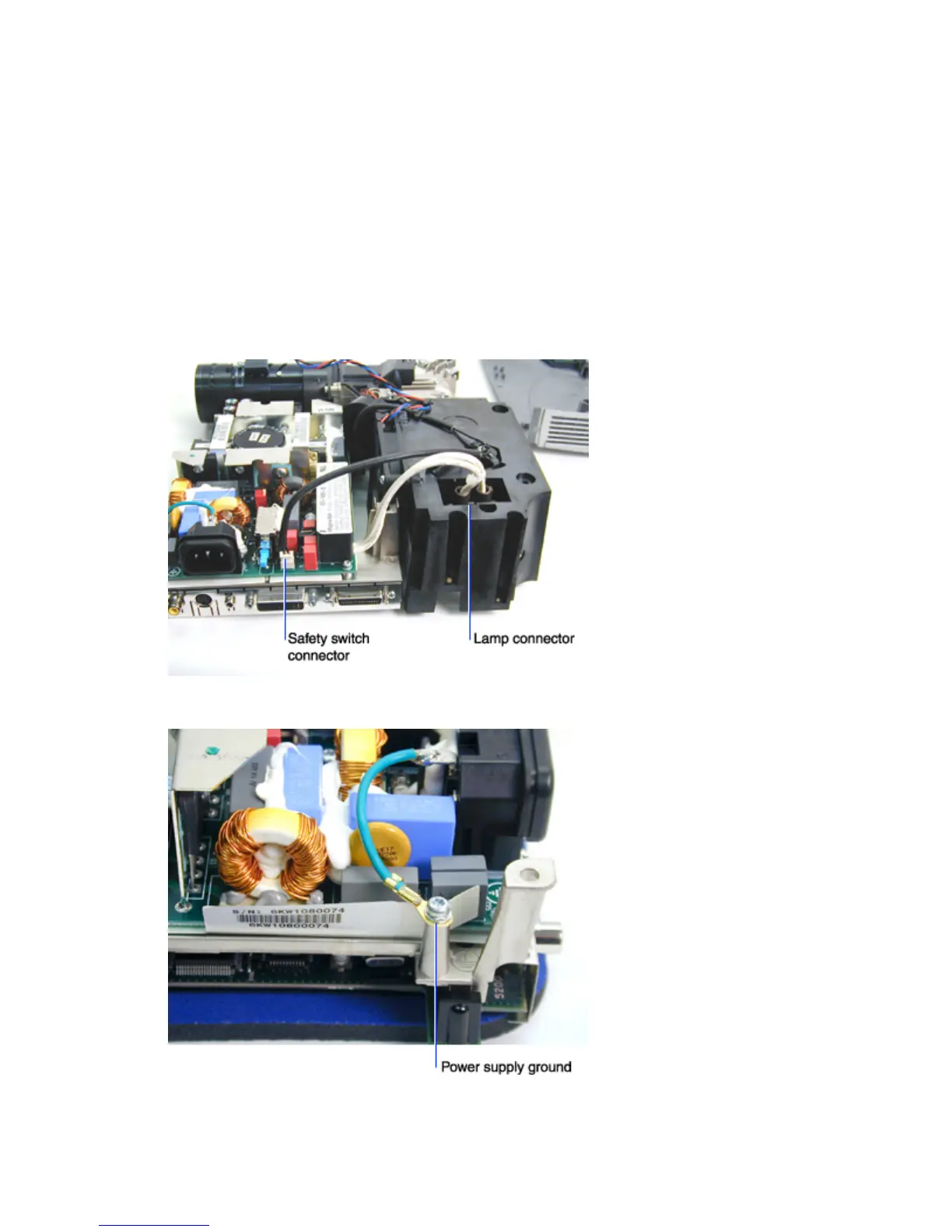 4 If you didn’t remove the lamp, unplug the lamp connector on the bottom of the lamp housing.