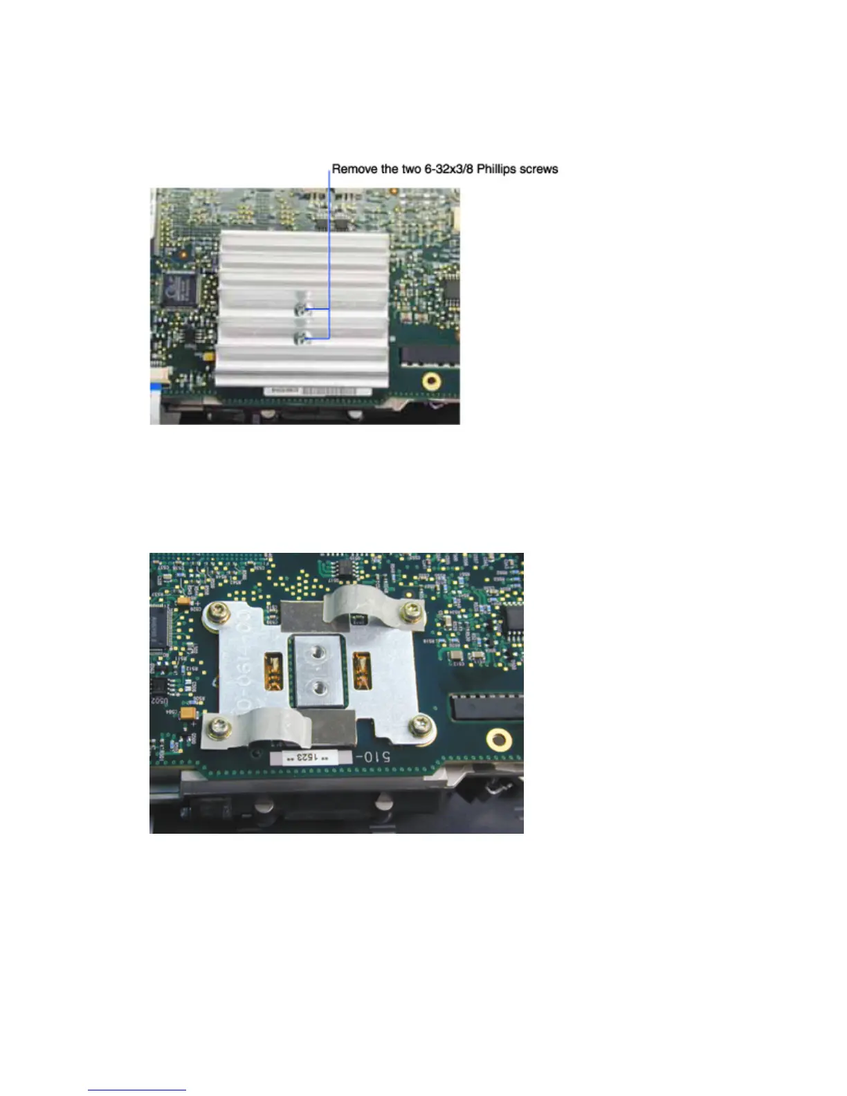 3 Remove the two 6-32x3/8 Phillips screws that fasten the DMD heat sink to the top of the