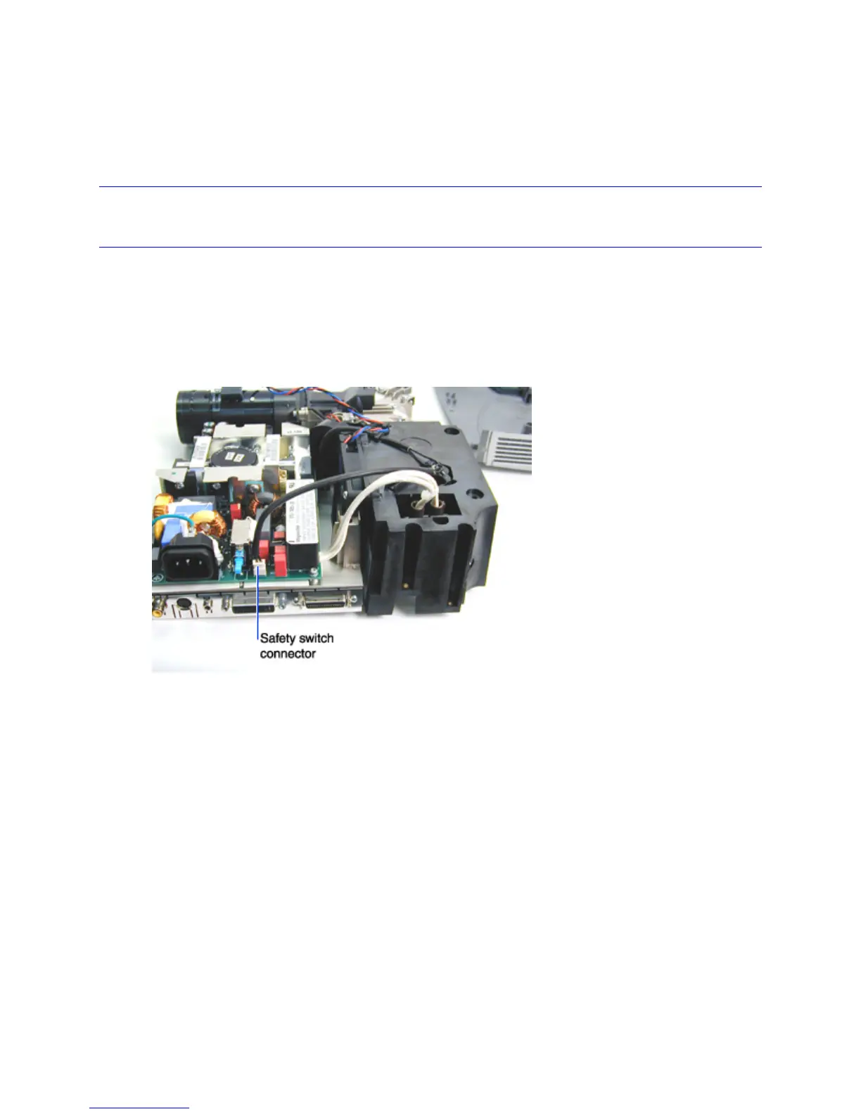 4 Detach the safety switch cable (black cable below) from its connector on the power supply.