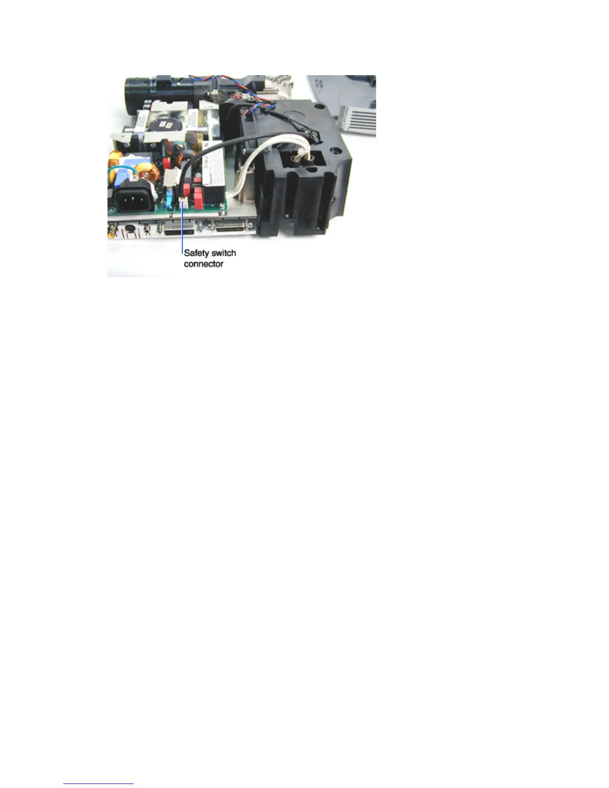 8 Turn the chassis over and install the lamp power cable and the safety switch cable.