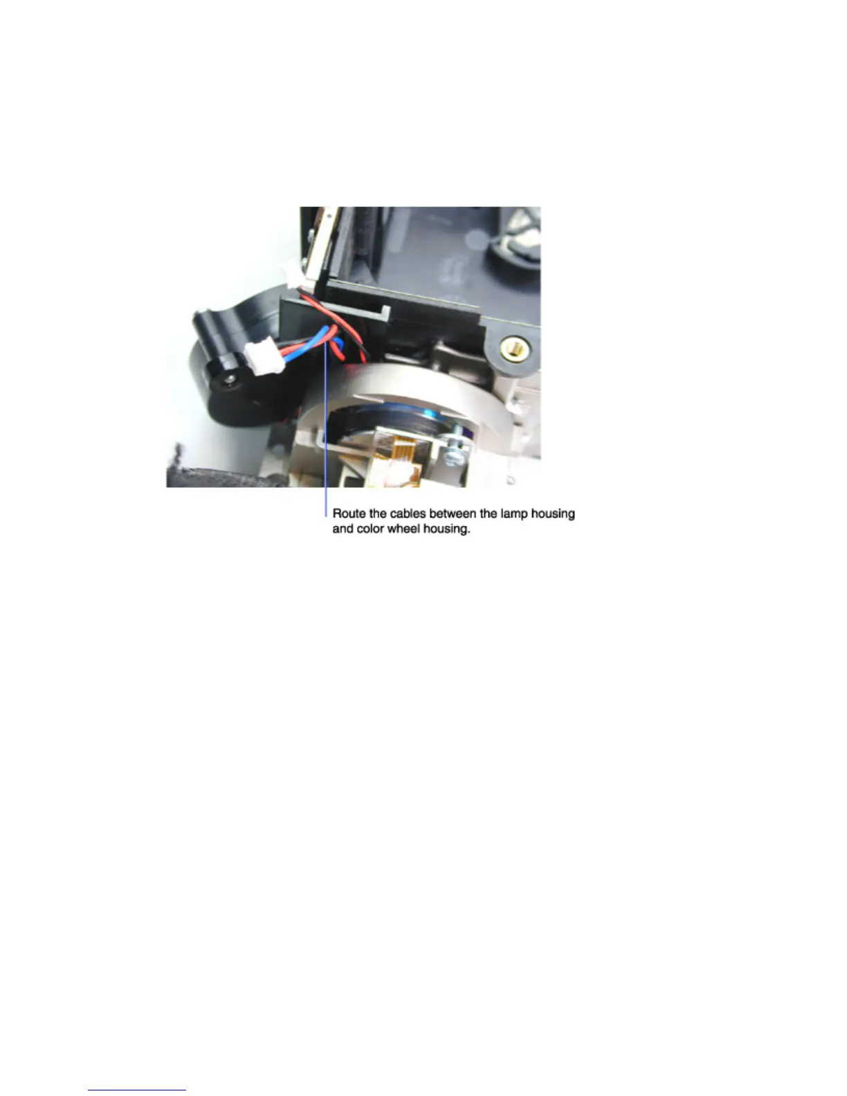 When you install the lamp housing, route the fan and blower cables between the lamp housing and